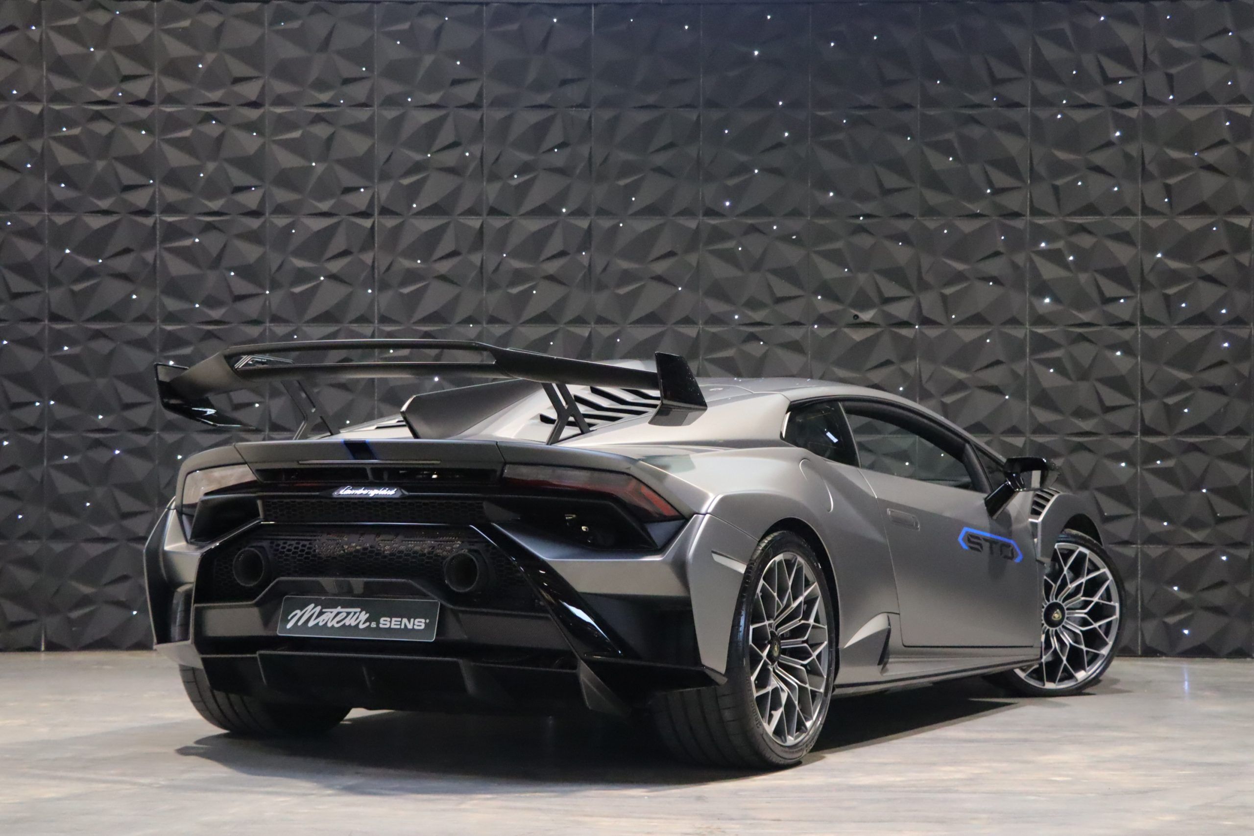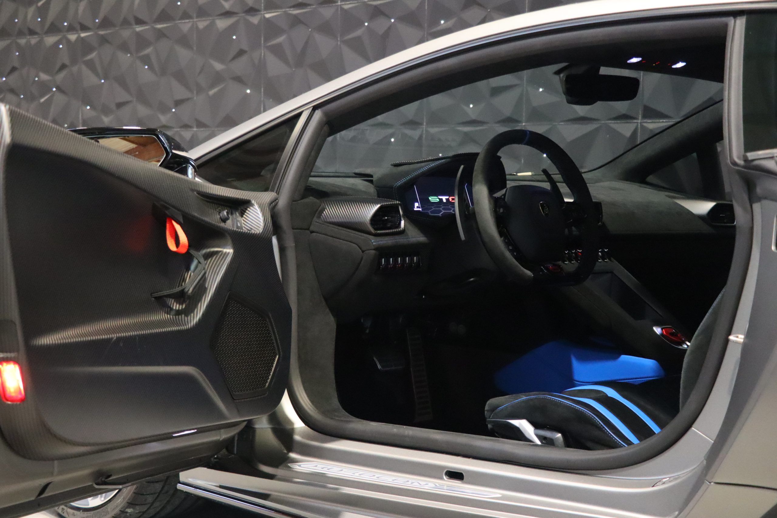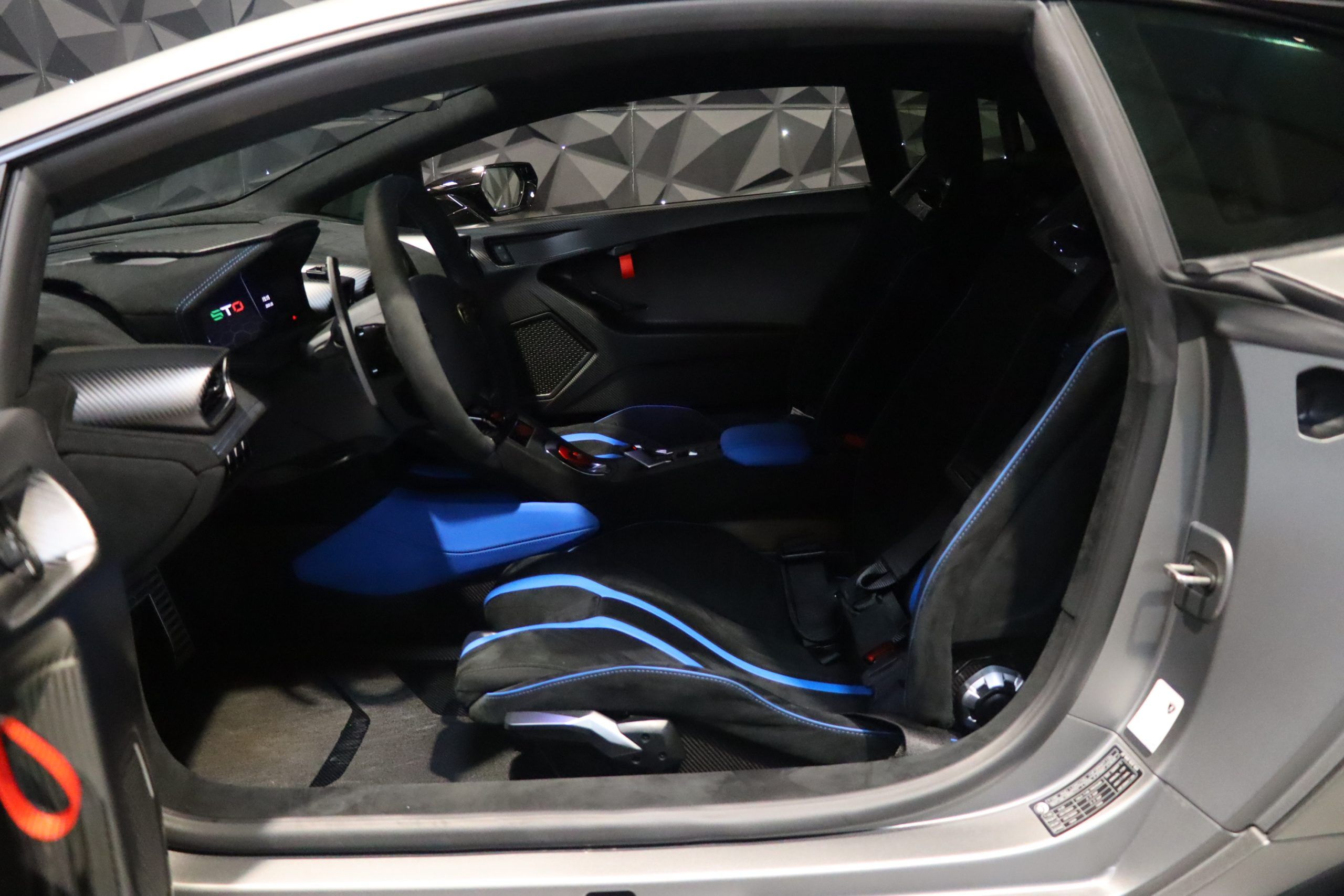 Our copy in particular has only traveled 8,800 km since its registration. Extremely well configured, this STO has the Full Carbon Matt exterior packs as well as the inner carbon pack! There is a full Alcantara cabin with stitching and Blue Bores as a reminder of the color of the exterior decoration. The car is of French origin and already registered in France (Malos CO2 acquitted), it is fully protected by a transparent PPF film. The car is up to date with maintenance at Lamborghini and benefits from a warranty + 5-year maintenance contract.