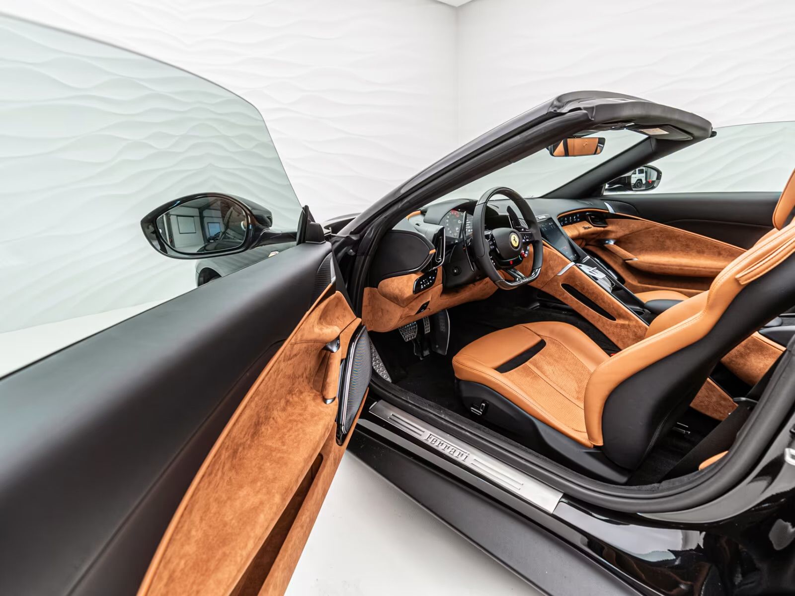 FERRARI ROMA SPIDER Ferrari Roma Spider PRICE: 315.350 € (265,000 € - NET 19% VAT) SPECIFICATIONS Vehicle condition: New vehicle Category: Convertible/Roadster Vehicle number: 19685 Availability: immediately Origin: German version Mileage: 110 km Performance: 456 kW (620 HP) Drive type: Internal combustion engine Fuel type: Gasoline Energy consumption (combined) : 11.4 l/100km CO2 emissions (combined) : 258 g/km Motor vehicle tax: 590 €/year Gears: Automatic Emission class: Euro6 Environmental badge: 4 (Green) Air conditioning: No air conditioning or automatic Color (Manufacturer): black Color: black Interior decoration: Alcantara, Brown DESCRIPTION Ferrari Roma Spider Exterior: Nero DS 1250 Interior: CUOIO 4609 Mats: Nero 3936 Equipment: * 20`Liquid Silver Painted Forgot Wheels * Soft Top Roof Fabric Sartorial Nero * LOGO Scuderia Ferrari Shields on Fenders * Colored Break Caliper in Giallo * Exhaust Pipes in Aluminio Opaco Brunito * Ventilated full electric seats * Neck Warmer * Aluminium Driver and Passenger Footrest * Carbon fib. steering wheel + LEDS * Electrochromic Rear-View mirror * Passenger compartment inserts in Alcantara * Wireless smartphone charger * Passenger Display * Premium Hifi System Smartphone interface * Personalization Pack - All information without guarantee. - Errors and prior sale excepted - The pictures shown are for reference only, the actual product may differ!!! - We speak German, English, Russian. - Sale net/export possible We look forward to your call! ——— Grandex Autohaus GmbH Weichselsteiner Str. 2, 92369 Sengenthal, Germany Phone: +49 91815489957 WhatsApp: +49 1522 3396519 Email: info@grandex.de CONTACT TEAM * OLEKSANDR ZERKAL (Director) Email: zerkal@grandex.de * ALEXANDER SCHRÖDER Email: schroeder@grandex.de WA: +49 1758 861296 * VLAD BONDARENKO Email: vb@grandex.de WA: +49 1516 1159034