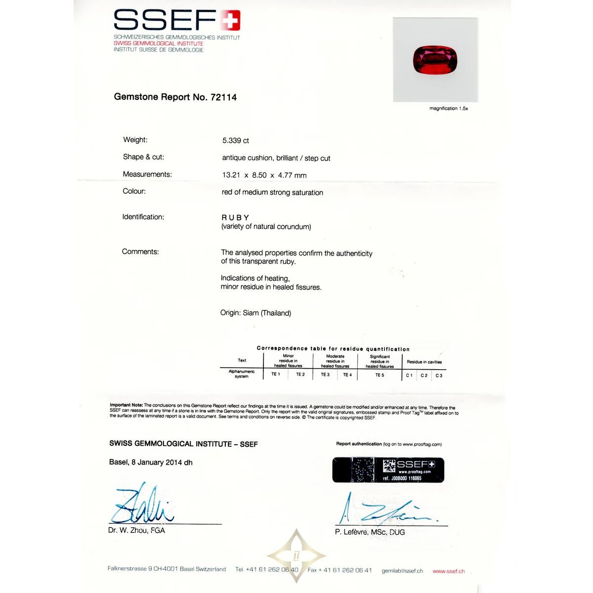 Accessories: Certificat de laboratoire