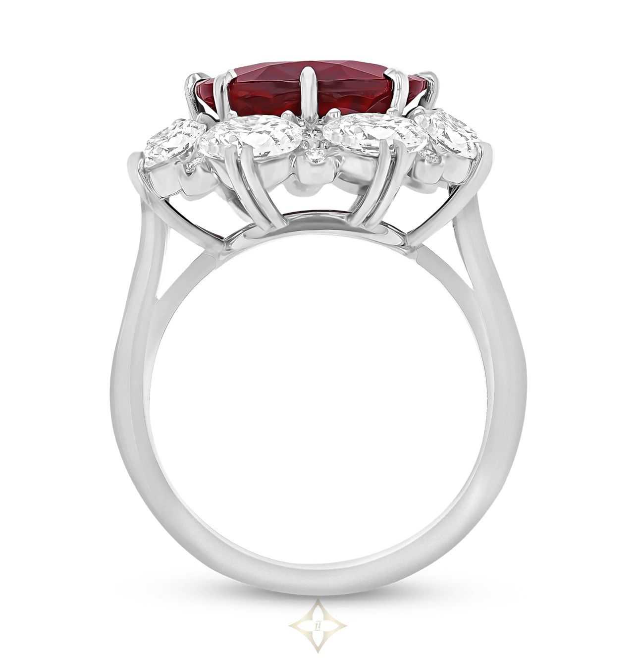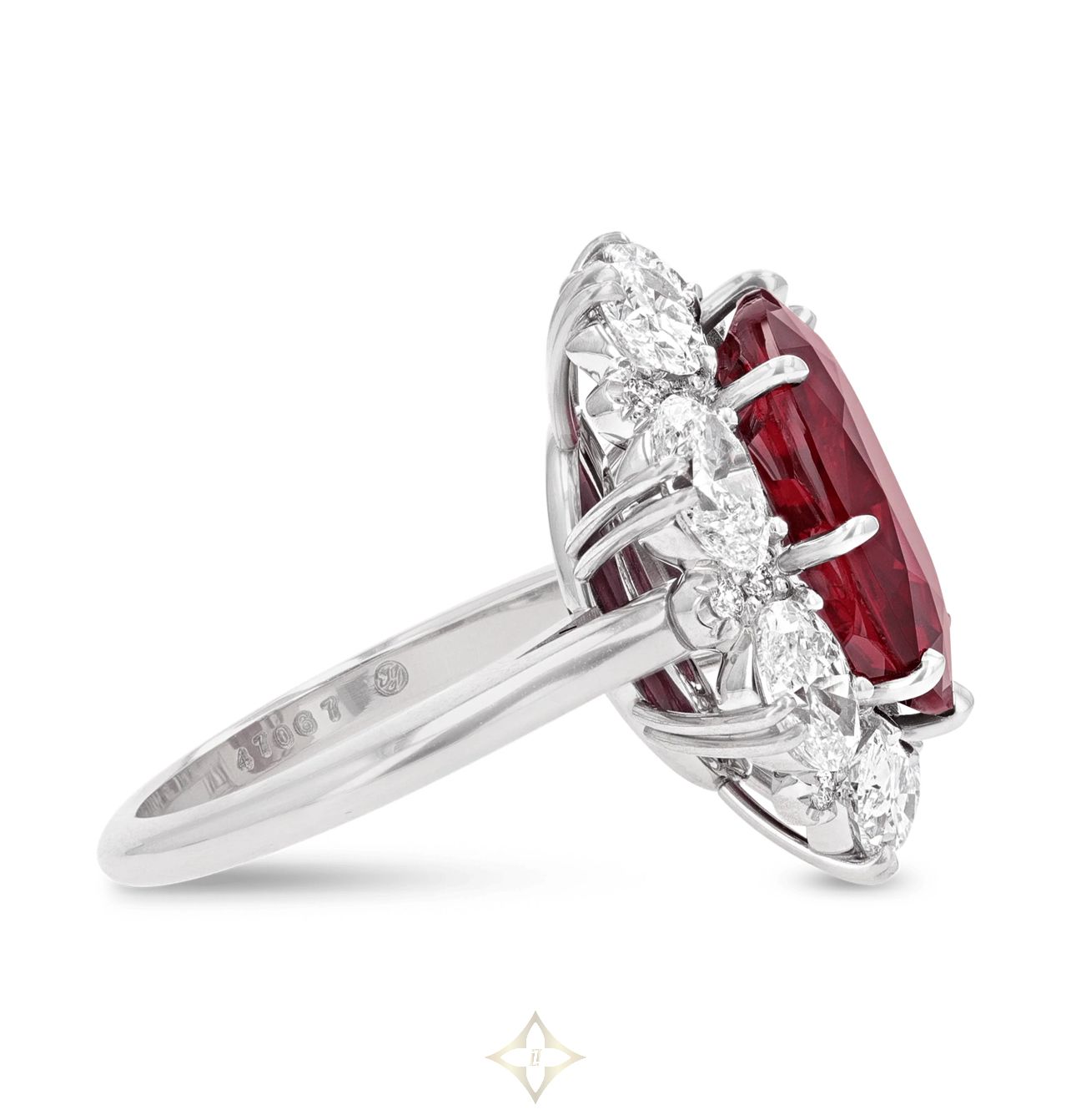 The gem displays the striking deep red hue emblematic of the finest rubies
