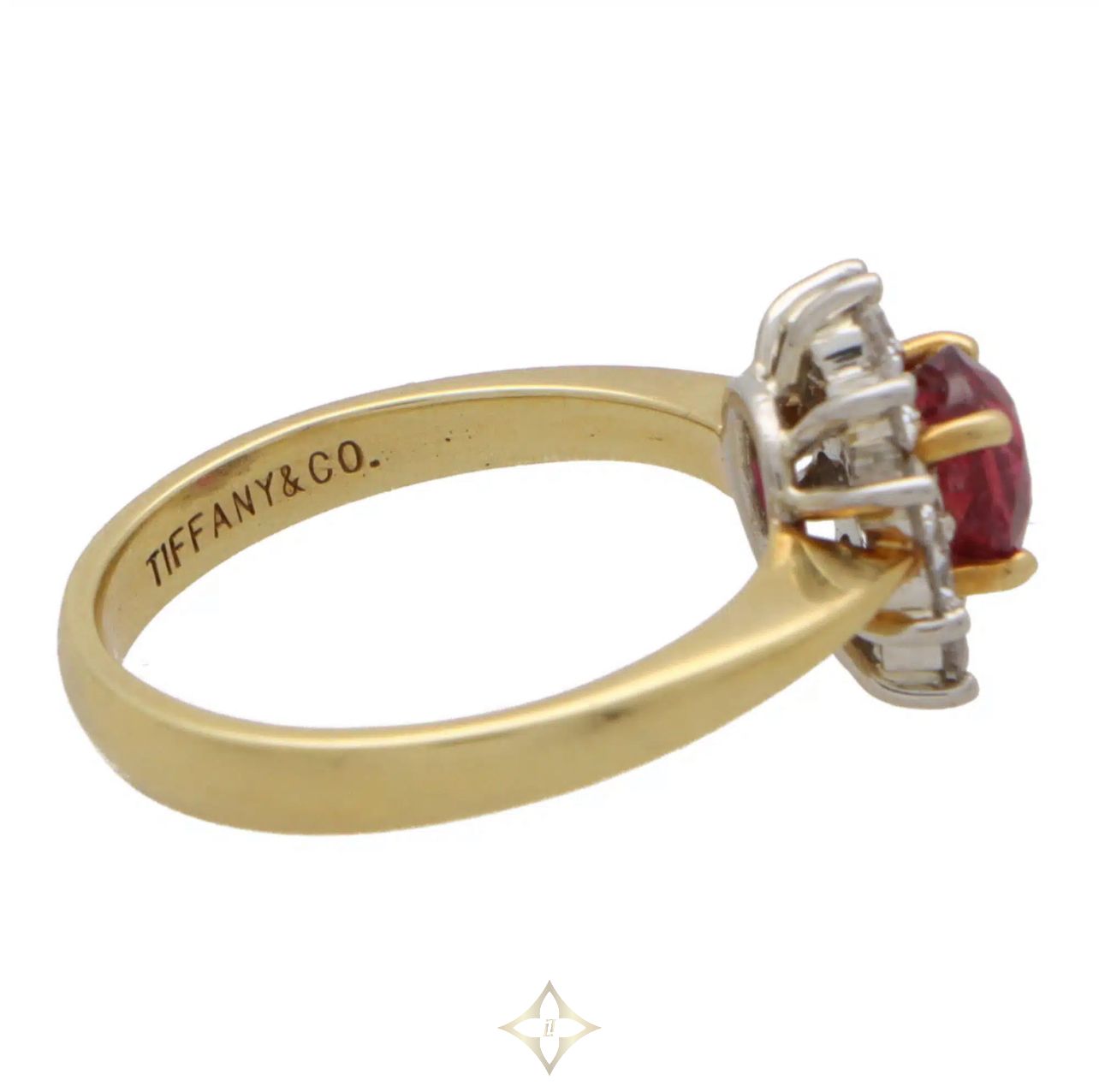 There is a total ruby weight of 0.78 carats. There is an estimated total diamond weight of 0.50 carats, estimated G-H in colour with WVS clarity. The ring is currently a Uk finger size L (USA size 6) but this can be resized for a perfect fit. The ring is lastly stamped Tiffany & Co, PT950 (for platinum), 750 (for gold).