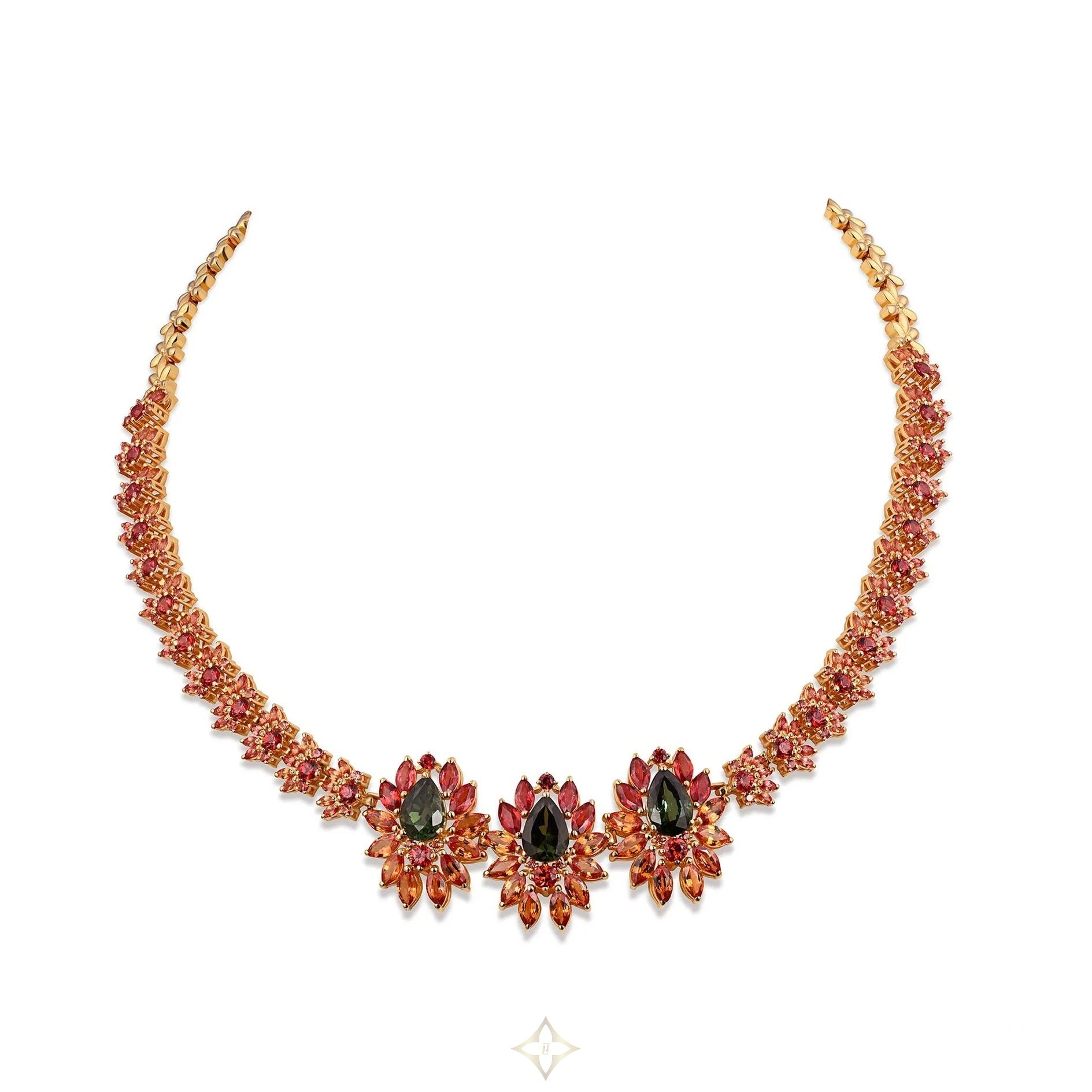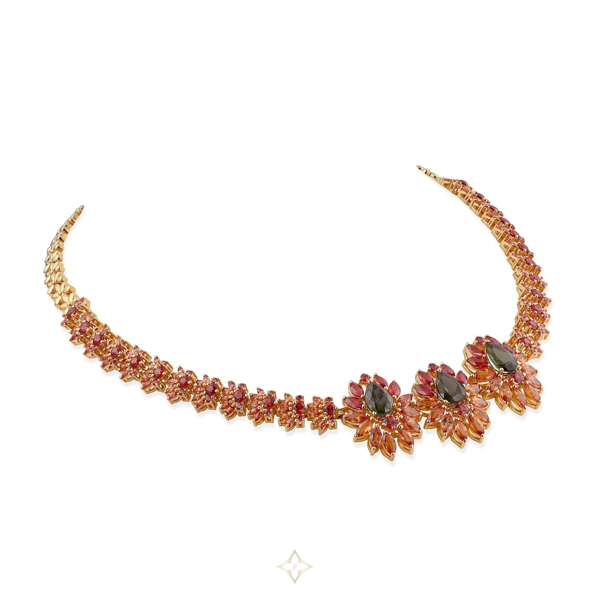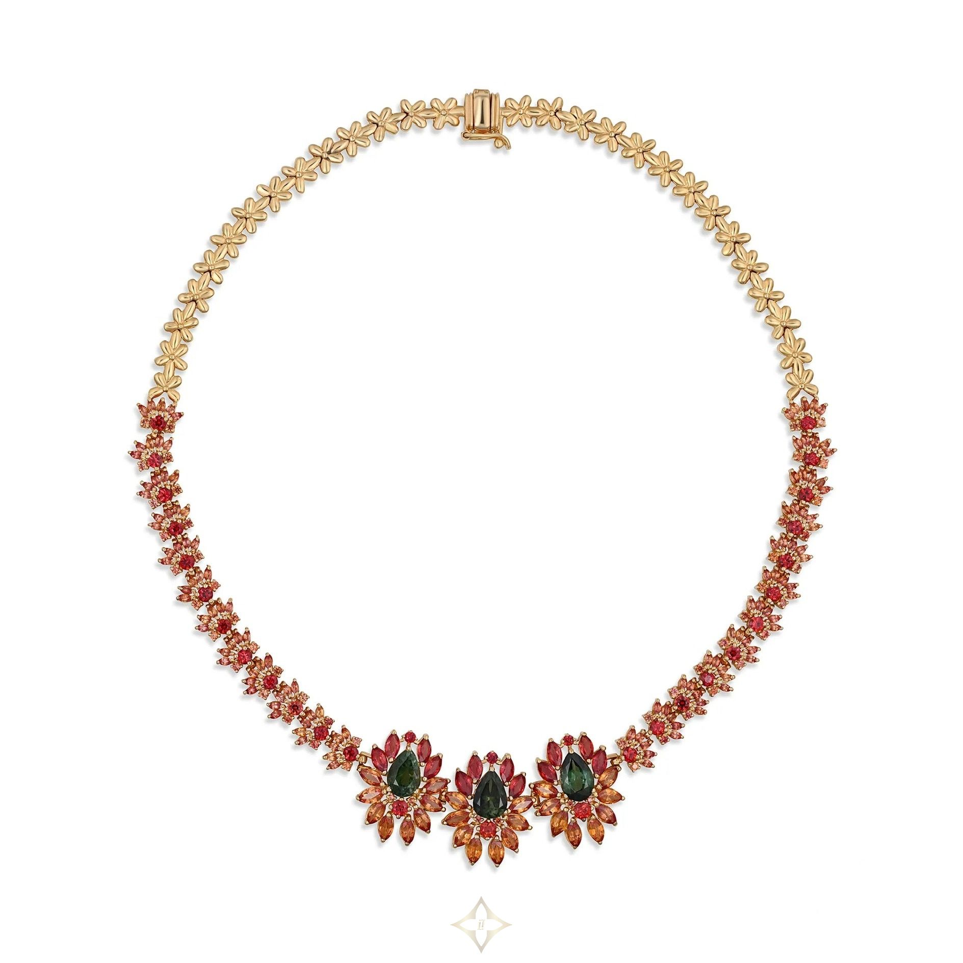 Zahra Icon Necklace Design Code: C3S1NK.04 Regular price: AED 262,000 DESCRIPTION Zevaher Zahra — an eternal garden of gemstones, love, and legacy. • Gold: 21K • Weight: 75g • Colored Gemstones: 27.6ct • Size: 42cm COLORED GEMSTONES • Orange Sapphire: 14ct • Red Sapphire: 7.6ct • Tourmaline: 5.8ct ——— ZEVAHER (Zevaher DMCC) Jumeirah Lakes Tower, Opp Discovery Gardens, Sheik Zayed Road، Exit 29 - Dubai - United Arab Emirates CONTACT * Uzma Hassan (DIRECTOR OF OPERATIONS) VILLA 76, LA QUINTA, VILLANOVA, DUBAI, U.A.E WhatsApp: +971 50 693 8240 Phone: +971 50 178 8357 Email: contact@zevaher.com