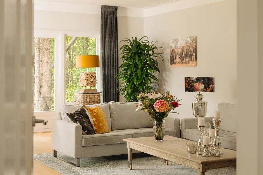 This villa, also known as ’The White House’, served as a guesthouse until 1970. This is reflected in the layout of the house, which features five spacious bedrooms, a sitting room, a living room, a dining room, a kitchen with an island, a generous hallway, and a landing. The current owners have modernized the house with great love, without losing its character. This can be seen in the beautifully plastered walls, the Eurocol stucco floor, and the beechwood parquet flooring. The result is a villa with the charm of the past and the comfort of today, surrounded by a delightful garden in a unique setting.