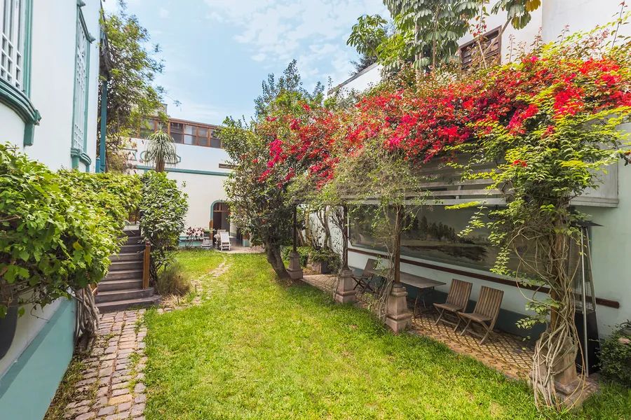 The main house has a land area of 500 square meters and a built area of 650 square meters. With 6 spacious bedrooms, 4 of them complete with en suite bathrooms, 1 shared bathroom and 1 half bathroom, this house offers an ideal space for a large family or for those who wish to give another use to this spectacular property in one of the best locations in Barranco.