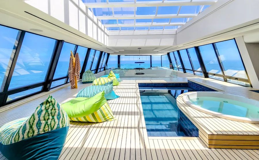 Behold, an extraordinary apartment that transcends the boundaries of luxury living, meticulously crafted to mirror the grandeur of the world’s most illustrious super yachts. Boasting five lavishly appointed bedrooms and bathrooms, this newly finished marvel features an indoor/outdoor pool, a sumptuous stateroom lounge, and an upper deck lounge that exudes elegance at every turn.