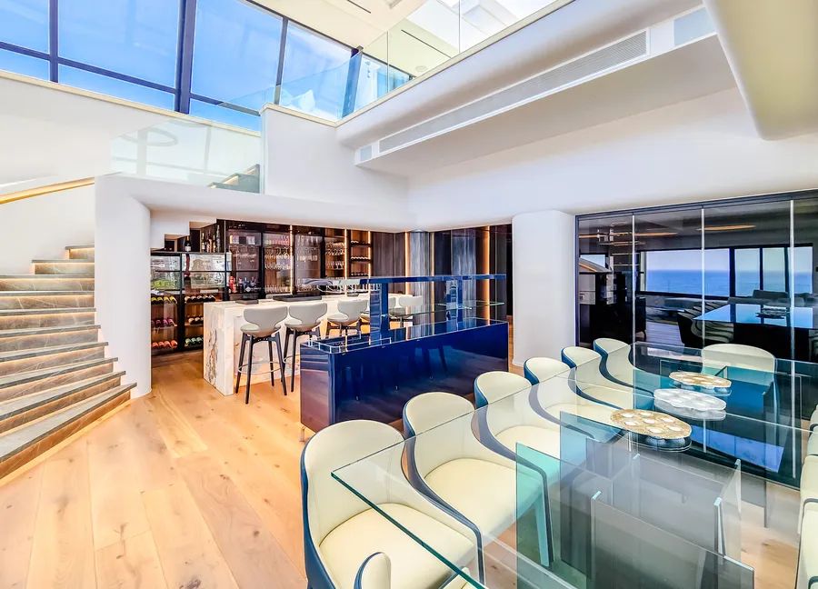 Step into a realm of exceptional sophistication with panoramic views that stretch from the dazzling promenade to the majestic ocean and beyond to the towering mountains. Every inch of this impressive abode has been adorned with the utmost care and attention to detail, ensuring that every moment spent here is nothing short of extraordinary.