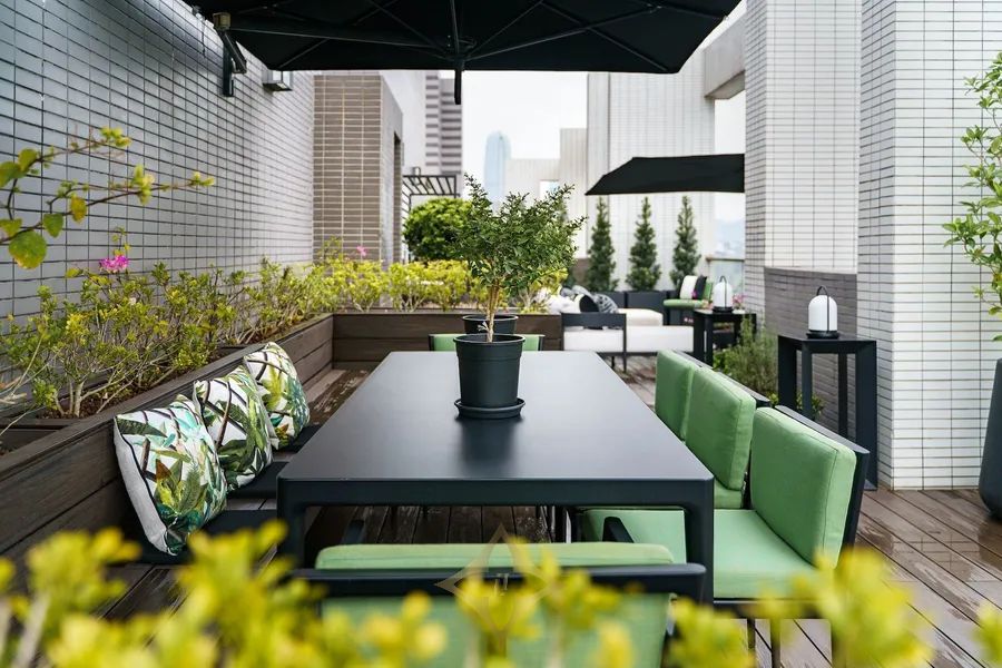 Step onto the rooftop garden, a multi-zoned oasis that elevates outdoor living with dedicated areas for alfresco dining, relaxing lounges, and intimate retreats.