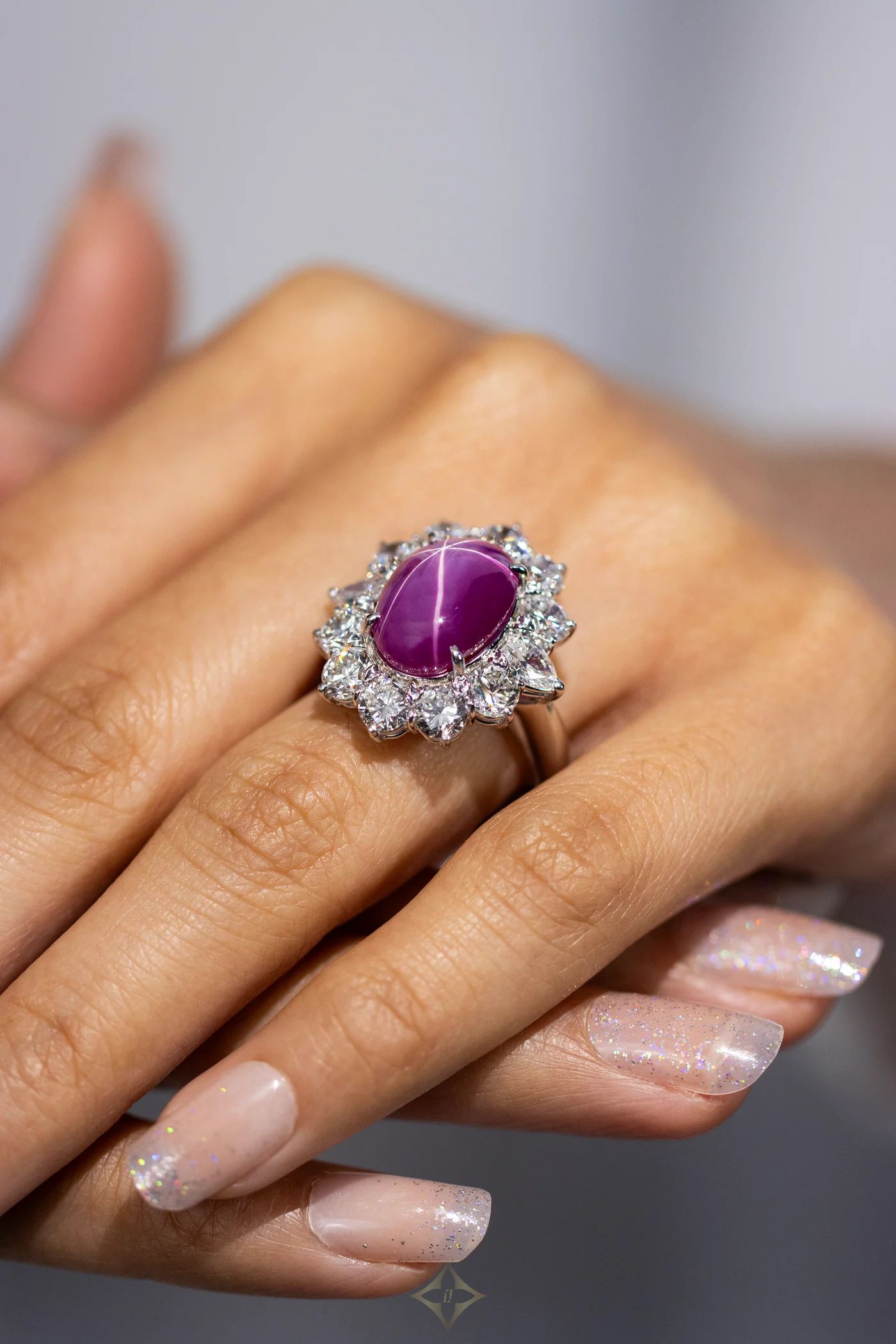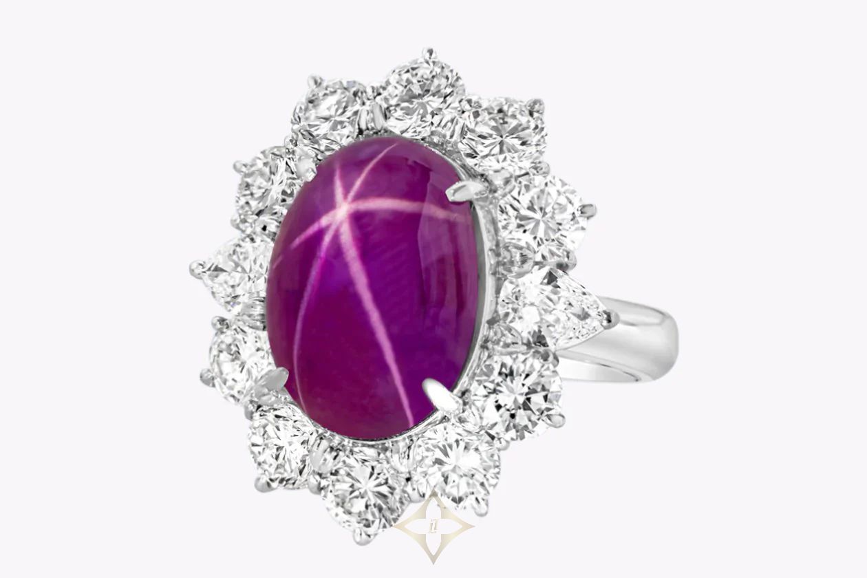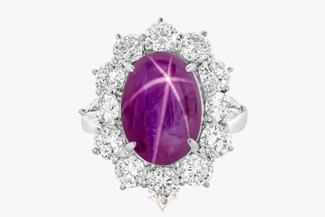 11.03 Carats Natural Cabochon Star Burmese Ruby Halo Cocktail Ring in Platinum | New York 🇺🇸