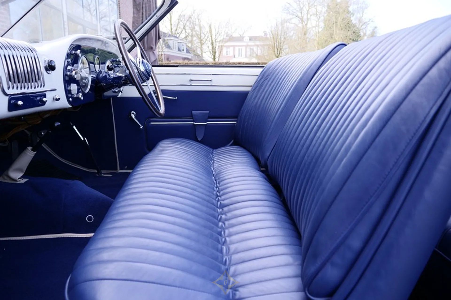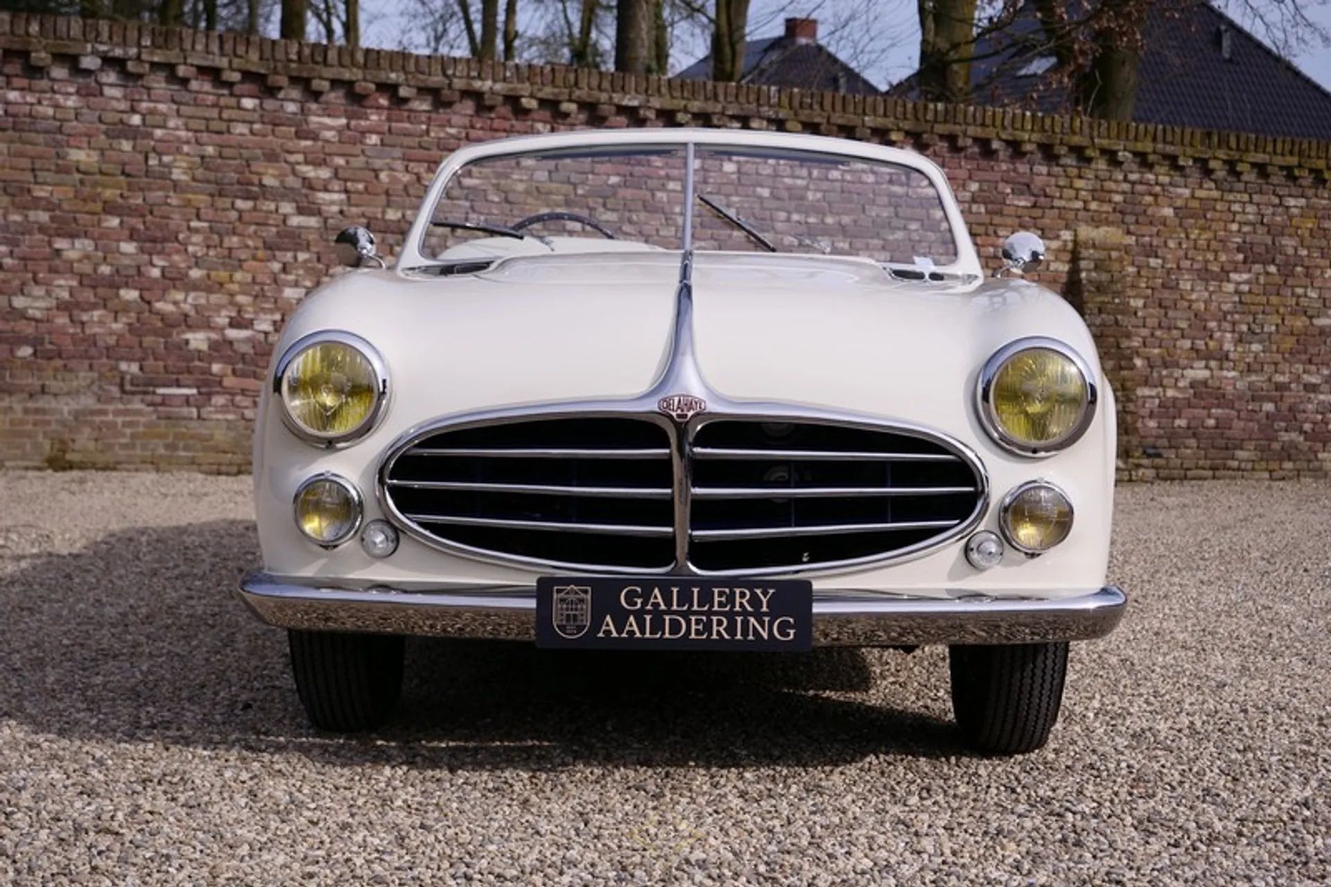 This is the ultimate in French grandeur! The car we have is a very special Delahaye! It is an Delahaye 235 convertible by Antem! The Delahaye 235 succeed the 135 series, built between 1935 and early 1954. The 235 series has the famous and renowned 3500 cc 6-cylinder, triple carburettor engine producing 152 Hp and a top speed of 180 km/hr. At the time it was thought that these figures were out of this world and was seen as the “The ultimate in Grand Touring” model by Delahaye. Only 85 examples of the 235 were ever made and came in a variety of body shapes such as the Coupe, Roadster, Coach and Convertible. A number of the days top bodywork builders and designers were commissioned; illustrious names such as Letourneur & Merchant, Figoni & Falaschi, Saoutchik, Motto ,Chapron en Antem were engaged! Antem eventually built 14 of the 85 cars of which just 1 out them all was a convertible! Our car is that convertible with chassis number 818022. It is a world beating design, a car in which the lines and styling can only be properly appreciated when you see the car in the flesh! There is such an abundance of lovely design elements that the accolade of art is really no exaggeration! It was no coincidence that chassis number 818022 served as the Grand Palais 1952 Paris Motor Show feature car! It was first registered( 6772 BN 75) on the 6th November 1952 to a Parisian who kept the car until early 1957. In March 1957 it was sold to its second owner, again a Parisian, Mr. Victor Franssen originally of Belgium descent and know from various international movies. It was sold again in 1963, to be exact on the 21st June, with retention of the original number plates and registration. The new owner was another Parisian inhabitant a Mr Lucienne Sergent, lawyer. Many years later the car became part of the famous Mr. Philippe Charbonneaux collection in Reims where it was exhibited in its museum. In 1985 the title passed to his son and became part of his daughter’s collection. Up to this time the car enjoyed good maintenance and remained in original condition with exception of the paintwork. A lovely and rather special detail is the steering wheel which was especially commissioned for the Paris Motor Show! A few years ago between 2012-2014 the last owner arranged for a well-known French specialist to totally restore and mechanically overhaul the car. This was a thorough job with no expense or effort spared and completed with a keen eye to details and authenticity. The bodywork was subjected to a Bare-Metal restoration, everything was attended to including the wiring loom, instruments, a re-spray in the original finish, a completely new interior trim in the original colour and summer hood. The full mechanical overhaul included the engine, brakes and “Cotal” gearbox. Driving this abundantly powered car is a real feast. The whole restoration process has been documented with many photos and invoices. This is car that warrants its own book. A truly amazing styled Delahaye, the official Paris Motor Show car, unique, a one-off, its history known from day 1 with supporting evidence. No doubt this is a true collectors item! Gallery Aaldering is Europe’s leading Classic Cars specialist since 1975! Always 300-350 Classic and Sportscars in stock, please visit www.gallery-aaldering.com for the current stock list (all offered cars are available in our showroom) and further information. We are located near the German border, 95 km from Düsseldorf and 90 km from Amsterdam. So easy traveling by plane, train, taxi and car. Transport and worldwide shipping can be arranged. No duties/import costs within Europe. We buy, sell and provide consignment sales (selling on behalf of the owner)