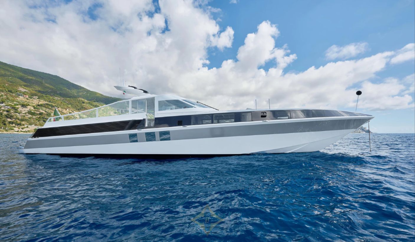 Powered by three MAN V12 1,800 hp engines with Kamewa waterjets