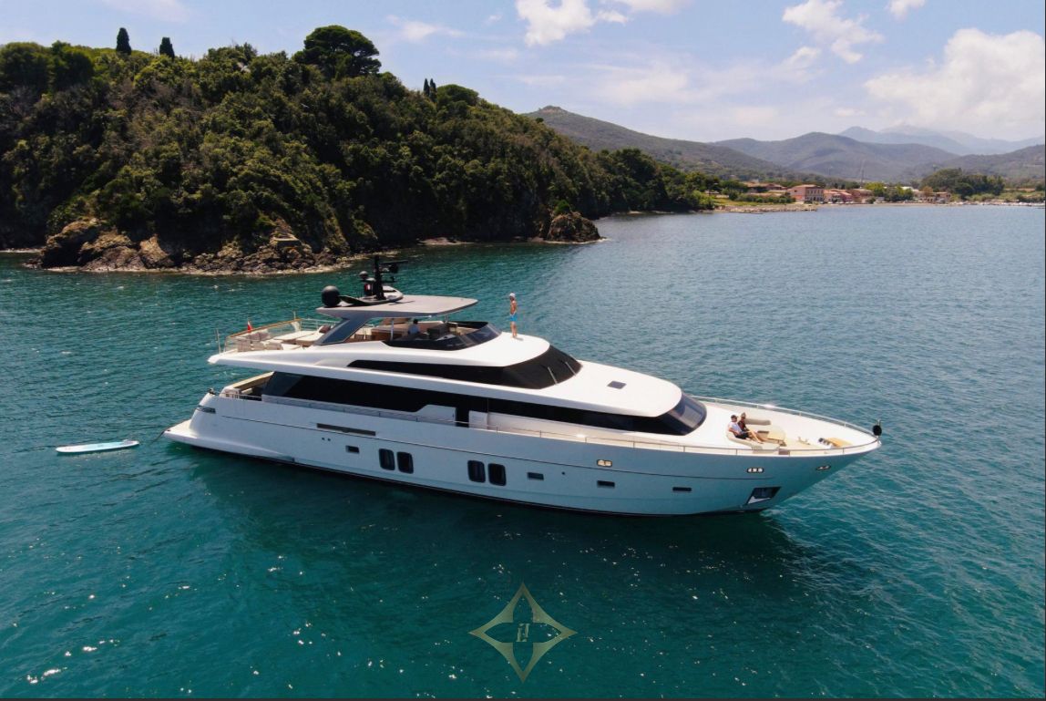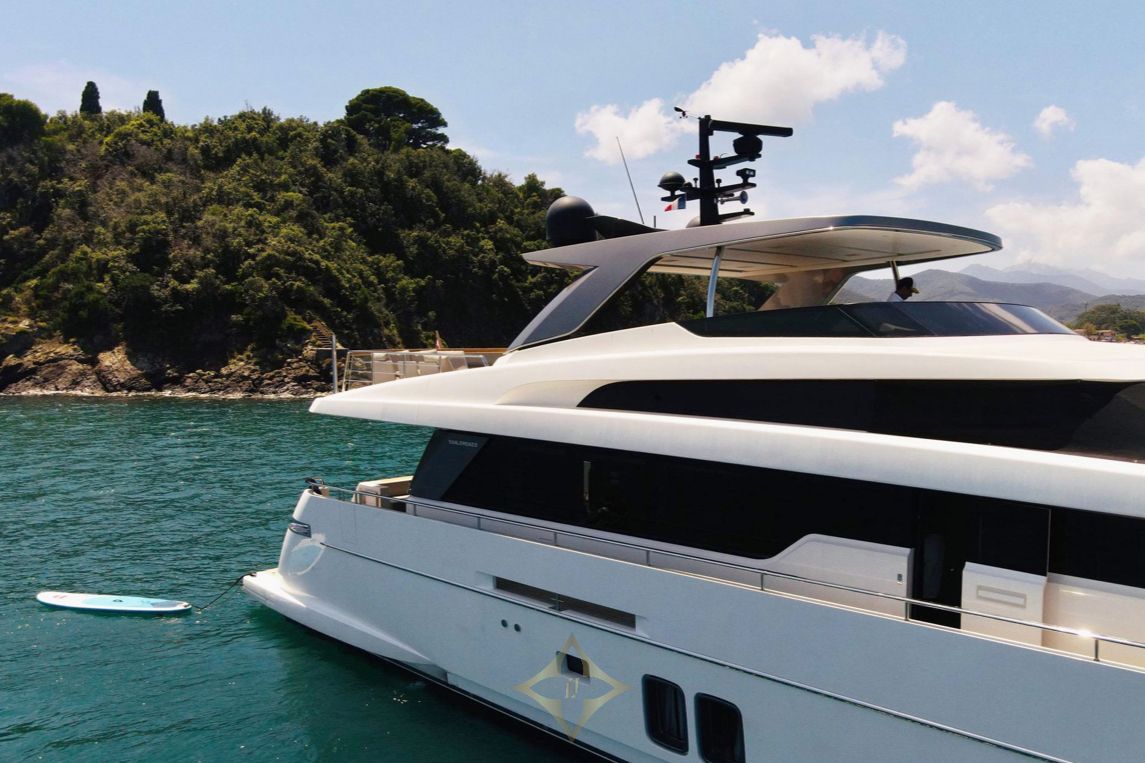 This Sanlorenzo SL96 is a 29.1m luxury flybridge yacht, built in GRP on a planing hull by the famous Italian shipyard Sanlorenzo and delivered in 2016 as part of their SL line. She was designed by Francesco Paszkowski and she can be registered under 24m.