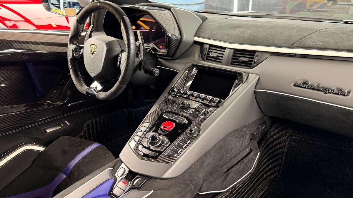 Inside, the cockpit emphasizes lightweight engineering and motorsport inspiration with Alcantara surfaces, carbon fiber elements, and a fully digital driver display. With only 9,000 km and German specification, this Aventador SVJ offers exclusivity, rarity, and pure V12 emotion — making it one of the most desirable Lamborghini models ever produced.