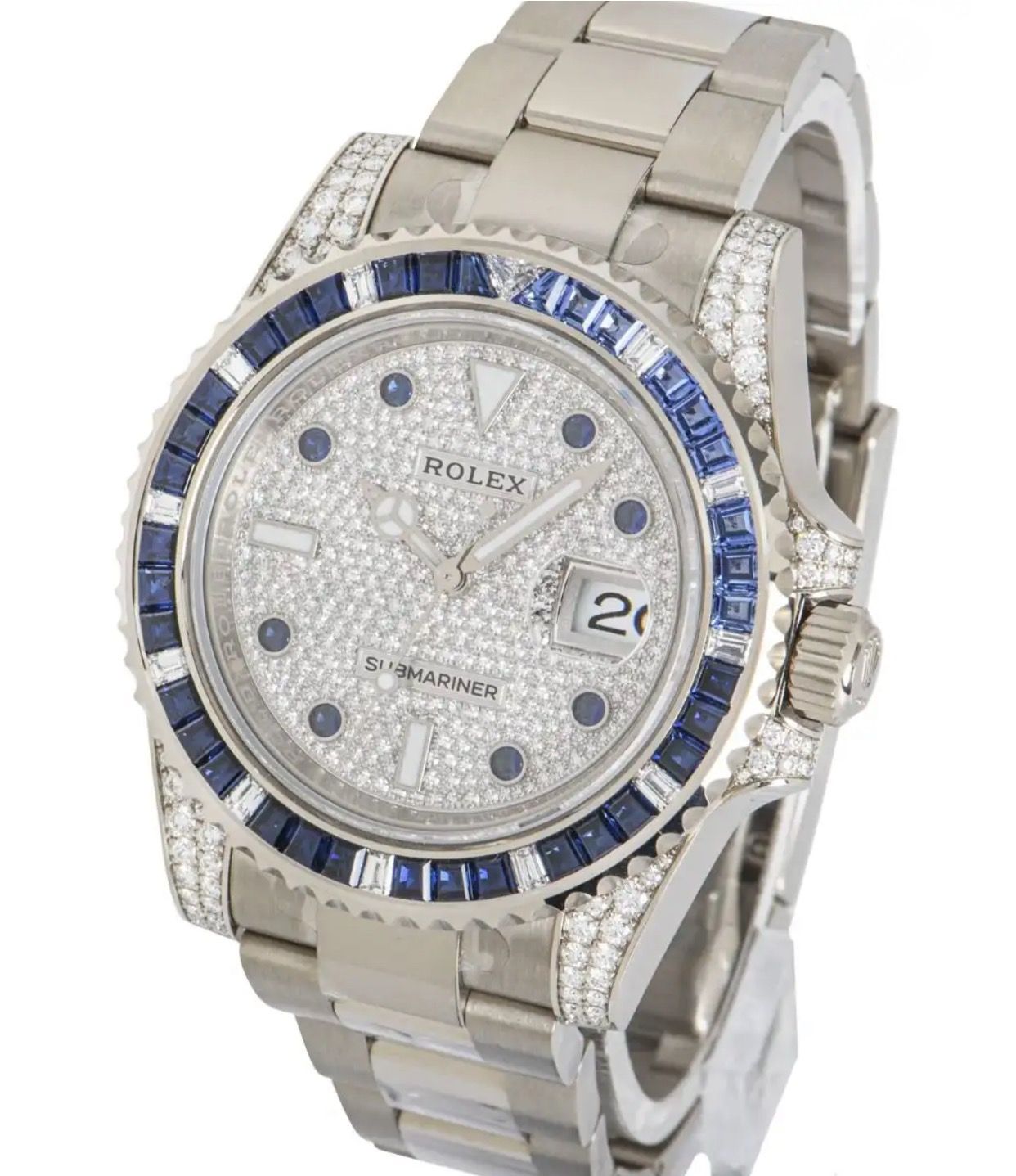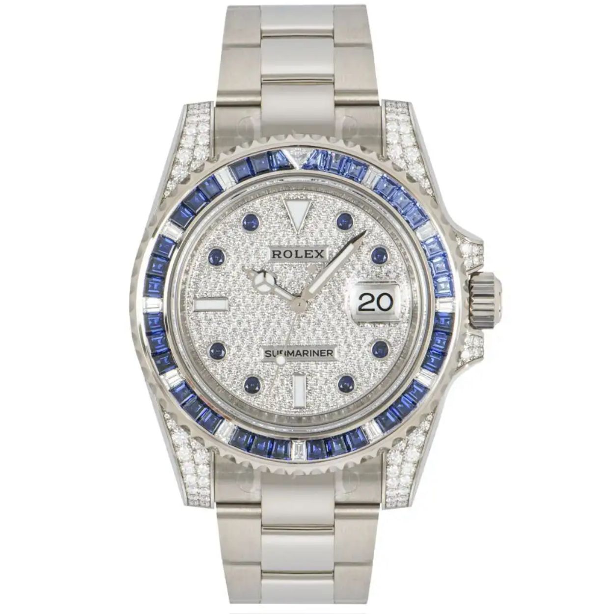 Rolex Submariner 116659 SABR Box | Papers | Year 2019 Condition: Very good PRICE: £125,500 RRP: Discontinued Specification Box: Yes Papers: Yes Year: 2019 Product Code: 264892 Watchfinder Warranty: 24 months Case Size: 40 MM Case Material: White Gold Movement: Automatic Bracelet: White Gold (Oyster) (length 19 cm) Dial Type: Diamond & Sapphire Paved Water Resistance: 300 metres ——— Watchfinder & Co. London Boutique The Royal Exchange, London EC3V 3LQ, United Kingdom Phone: +44 20 8150 8767 Email: aftersales@watchfinder.co.uk
