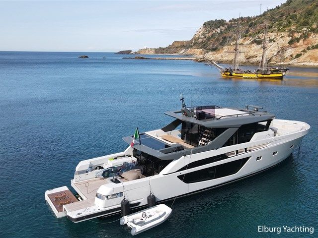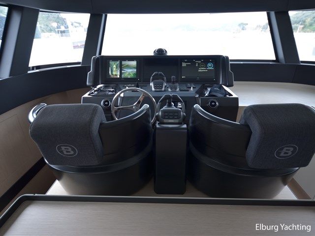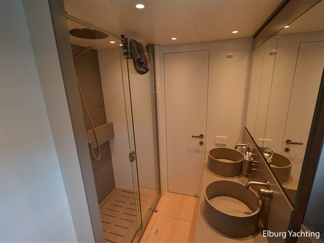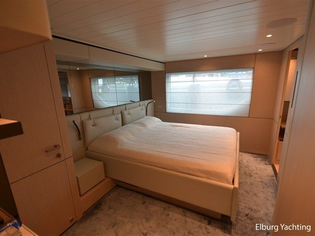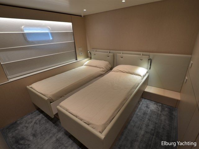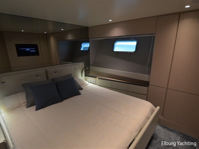 The BGX73's sophisticated and revolutionary exterior design and distinct layout perfectly combine elegant lines with large living spaces. The central position of the owner's cabin is best reflected in this model. Indeed, it is centrally located with access to both the living area and a private area, which can be used as a guest room if needed. Light plays a fundamental role, especially in the living areas, where the percentage of glass surfaces is so large that exterior and interior merge as part of the same environment. The yacht includes. equipped with: electrical system, cablemaster CM 7 cable reel , LED spotlight with remote control, DPS for Volvo Penta IPS, 2 underwater lights, right pantograph door, bow bar unit under windscreen, upgraded ventilation system for owner's and guest bathrooms, Premium Roda fabric cushions have been used for the exterior upholstery, sunscreens with carbon poles, hydraulic lift system for tender launching, pantograph gangway, Seakeeper 18 gyroscopic stabiliser, sun deck cushions with adjustable backrests, collapsible carbon shower aft deck, upgraded bollards, upgraded galley with sliding storage baskets, combination microwave, custom built drawers with sliding on top deck , additional cupboard space and customised saloon furniture, VIP cabin wardrobe rack, owner's suite with enlarged sink, customised wardrobe, crew-area with larger toilet, the third cabin has sliding beds, there is direct access to the spacious owner's cabin. Ultra UA60 anchor, Garmin Panoptix PS60 sonar, Surround View, Flir M364 night vision camera, advanced Wi-Fi with 6 access points & Starlink, Garmin remote control in crew cabin, auto-start generator system. The surveillance system consists of 4 fixed cameras (2 in the engine room,1 in the wheelhouse and 1 at the anchor locker), watermaker Idromar MC4J ( 210Lt per hour , 5000 lt per day). This beautiful yacht offers comfort and is ready for the new sailing season. For questions and/or to make an appointment, you are welcome 7 days a week at Elburg Yachting.