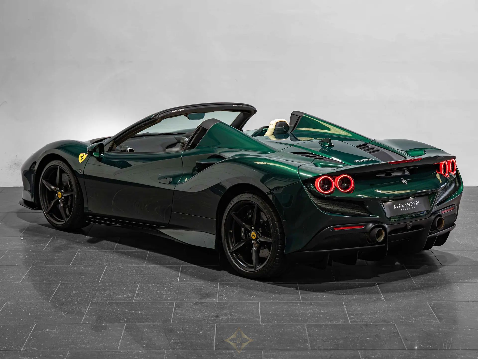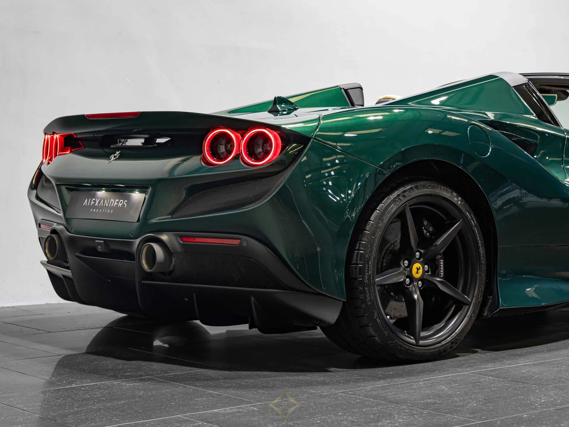2023 (23) | Ferrari F8 Spider PRICE: £279,995 Engine Size: 4.0 Transmission: AUTOMATIC Fuel Type: PETROL Mileage: 200 Finished in Extra Range 2-layer Verde Scuro, featuring a Crema leather interior. This Remarkable one-owner Ferrari F8 Spider is offered in immaculate condition having covered only 200 miles from new. The car comes complete with full Ferrari main dealer service history and the remainder of the manufacturer warranty until March 2027 and service plan until March 2030. Optional Carbon Fibre Dash Inserts Carbon Fibre Driver Zone + LEDs Carbon Fibre Central Bridge Apple CarPlay Premium Hi-Fi System (Speaker upgrade) Matte Black Front Lid Collar Daytona Style Seats Full Electric Seats Cavallino Stitched On Headrests in Nero Sport Tailpipes Tips Additional Coloured Mats With Logo ‘Scuderia Ferrari’ Shields Electrochromatic Rear-View Mirror Parking Camera Front and Rear Parking Sensors Matte Black Wheels Glossy Black Brake Calipers Coloured Standard Stitching in Nero Full car paint protection film (PPF)* ——— Alexanders Prestige Alexander House, Barr Lane Industrial Estate, Roecliffe, Boroughbridge YO51 9LS, United Kingdom Phone: +44 1423 325800 WhatsApp: +44 7881 377992 Email: sales@alexandersprestige.co.uk