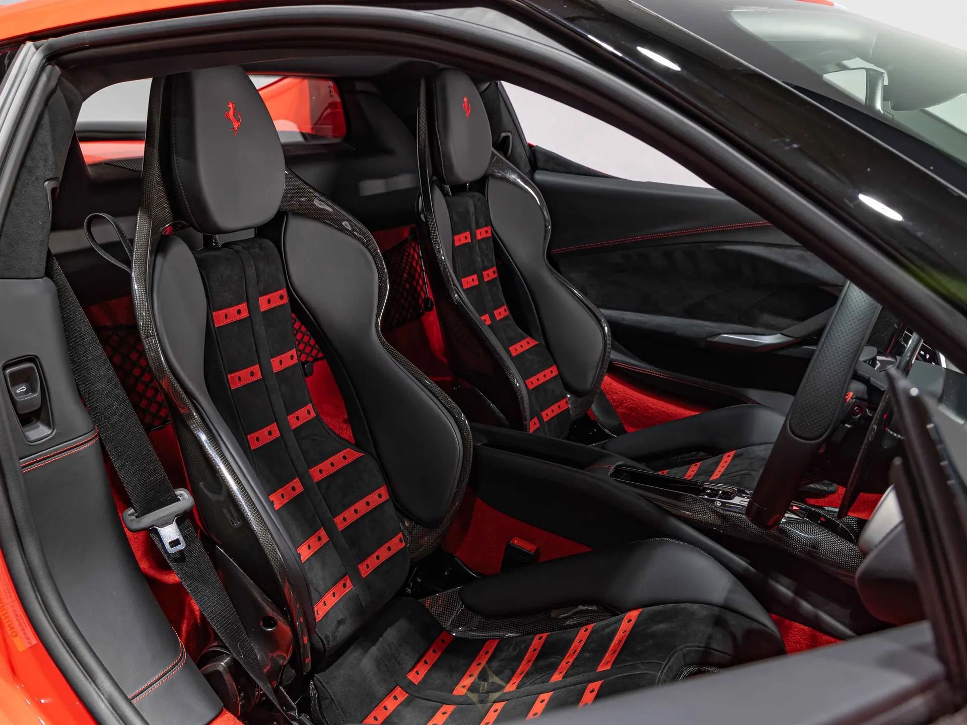 Finished in Rosso Scuderia paintwork with a Blu Corsa Coloured Livery, with a Nero and Rosso Alcantara and Leather interior, this one-owner Ferrari 296 GTB is offered in immaculate condition, having covered just 1,600 miles from new. The car comes complete with full Ferrari service history, Ferrari manufacturer warranty until July 2027, and the remainder of the Ferrari service plan until July 2030.