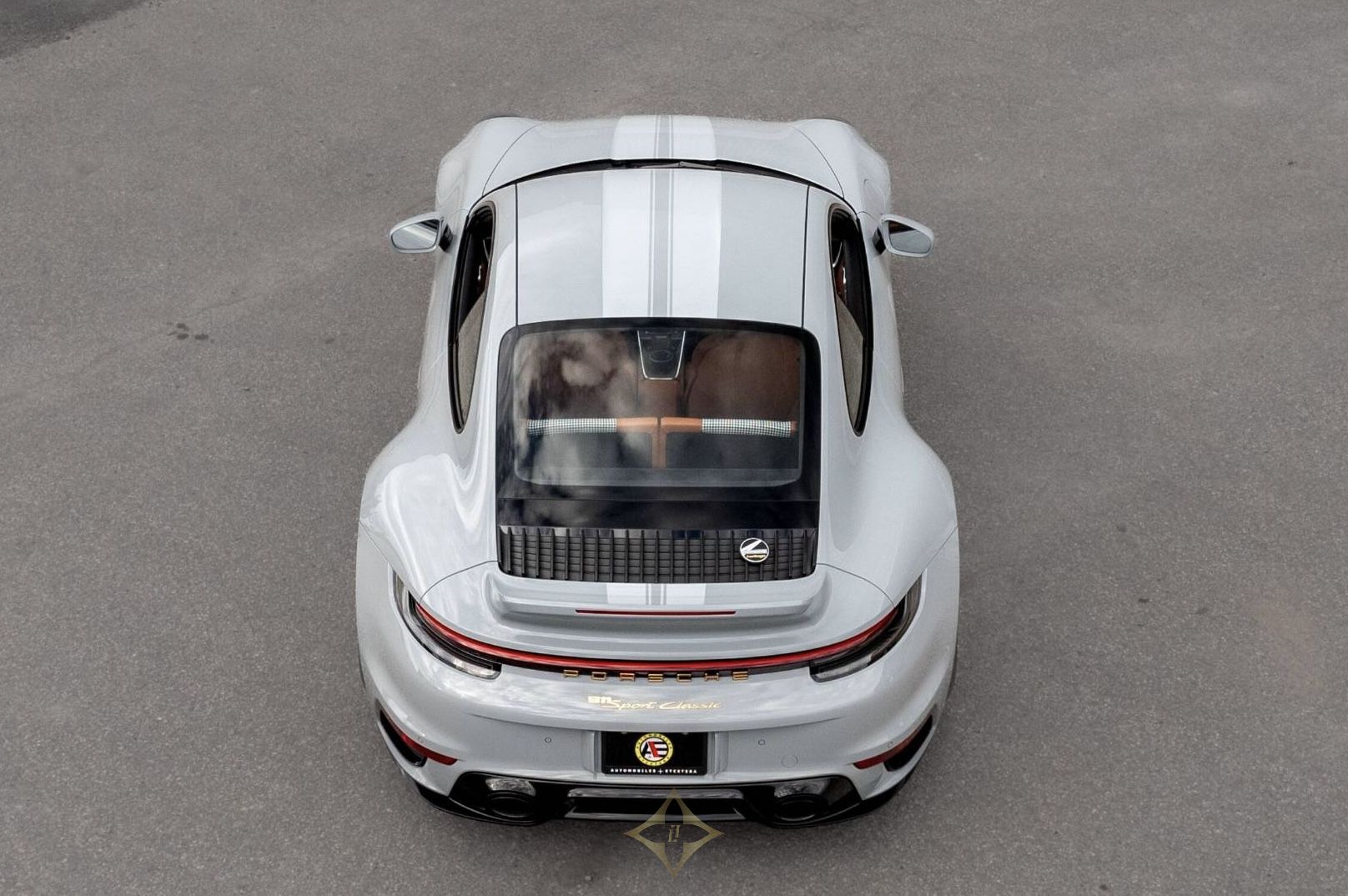 This limited production and highly exclusive Porsche 911 Sport Classic blends classic design elements with modern performance, paying homage to the iconic 911 models of the past. This particular example is #1095/1250 units made. Inspired by the 1972 Porsche 911 Carrera RS 2.7 and 1973 2.8 RSR, the Sport Classic features a distinctive wide body, a fixed ducktail rear spoiler, and retro-inspired Fuchs-style wheels.