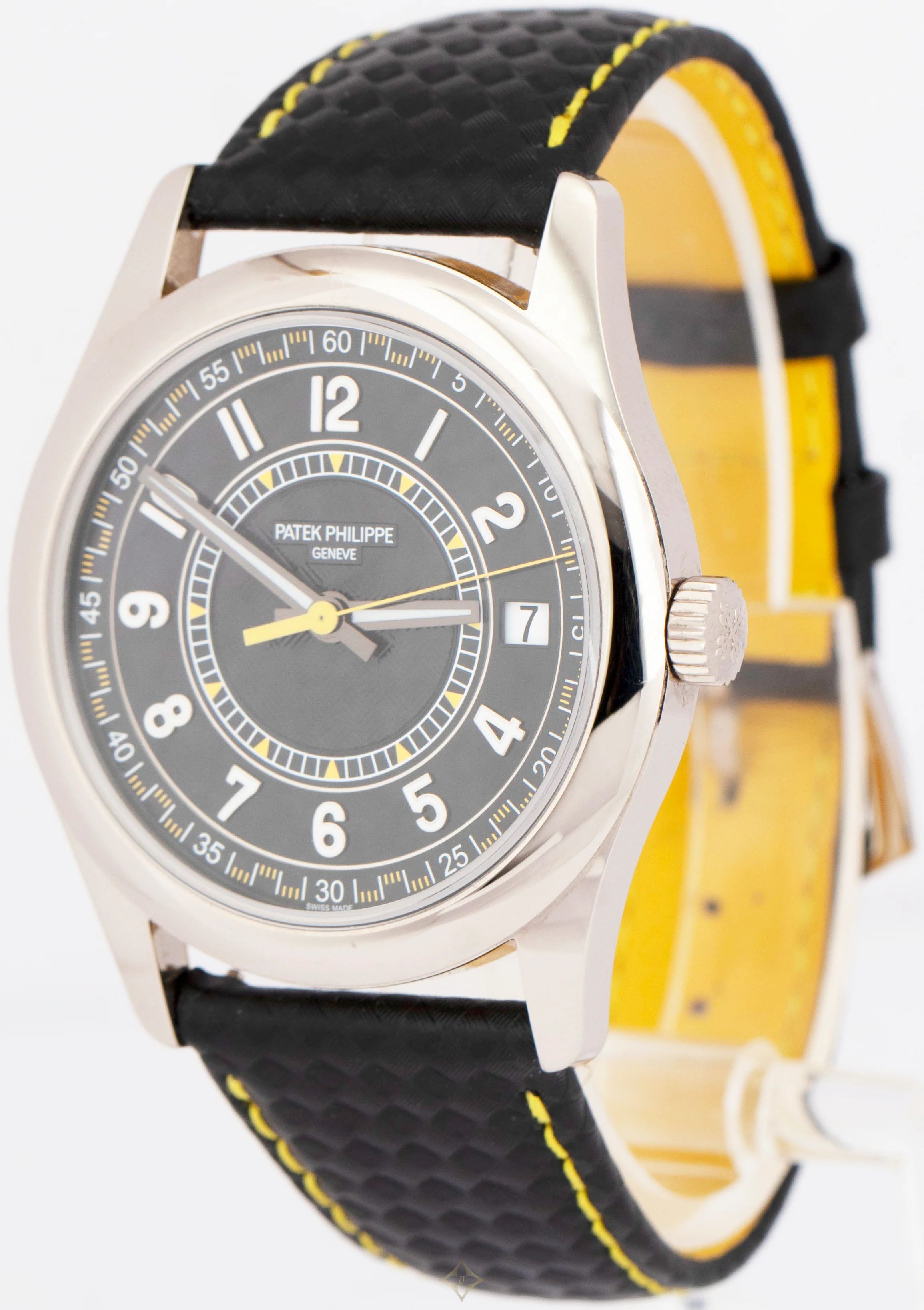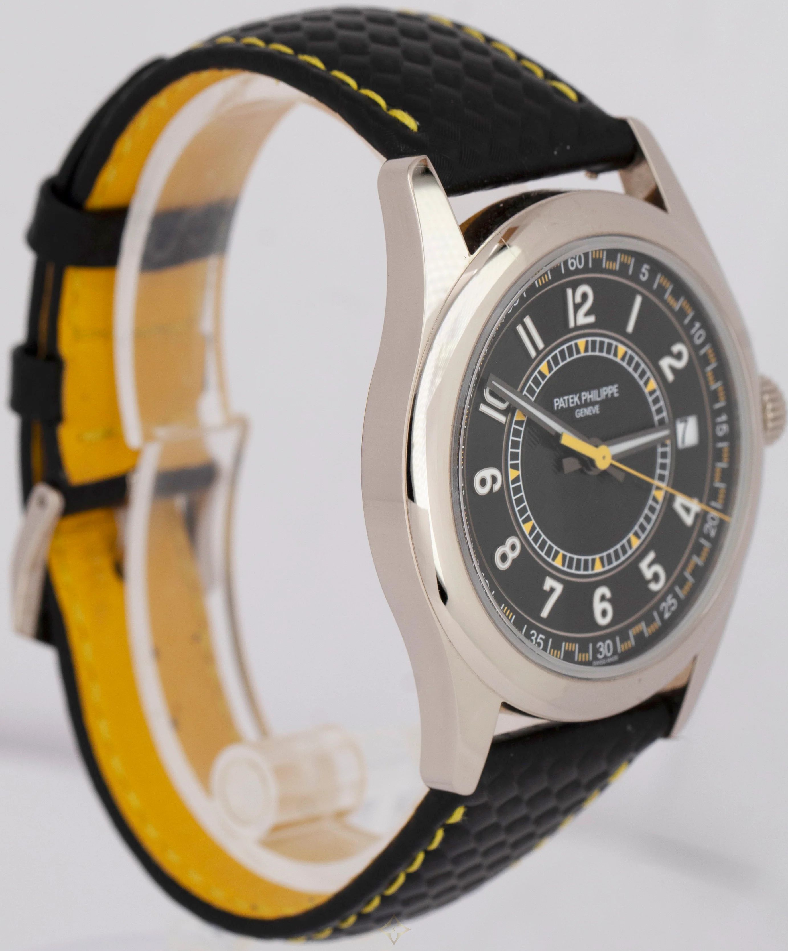 2024 PAPERS Patek Philippe Calatrava Gold CARBON Motif 40mm 6007G-001 Watch BOX SKU: C0125FRIXX769 Item Location: Massapequa Park, NY Regular price: $33,273.04 Bank Wire: $31,993.31 with Bank Wire DESCRIPTION Brand: Patek Philippe (Guaranteed Authentic) Product SKU: C0125FRIXX769 Model: Calatrava Reference Number: 6007G-001 Serial Number: ******* (The Patek Philippe warranty paperwork is dated August of 2024) Gender: Men's Metal: 18K White Gold Case Size: 40.00mm Wrist Size: This watch will currently fit the average wrist. Movement: Automatic Movement Crystal: Sapphire Crystal Dial: Black Carbon Motif Arabic Numeral Index Dial Bezel: Smooth 18K White Gold Bezel Band: Black Leather Strap Box: Yes, this item includes a Patek Philippe watch box and outer box. (Pictured) Papers: Yes, this item will include all of the paperwork pictured as well as a CollectorsWatches certificate of appraisal and authenticity as per buyer request. Condition: This item is in EXCELLENT PREOWNED condition. Please review the images provided. Location MASSAPEQUA PARK, NY Availability IN-STOCK Guarantee: Fully-Transferable International Patek Philippe Two-Year Warranty Valid Through August of 2026 ——— COLLECTORS WATCHES 400 Sunrise Highway Unit 2, Massapequa Park, NY 11762, United States CONTACT Eddie Buz (President and CEO) Phone: +1 (516) 541-4040 WhatsApp: +1 (516) 595-3935 Email: mass@collectorswatches.com
