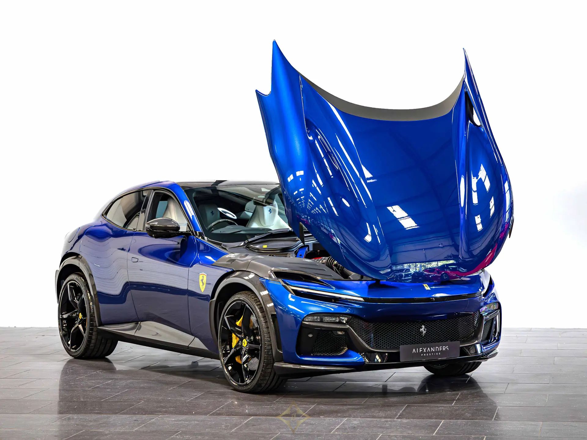 Finished in Extra Range Blu Elettrico metallic, Extra Range Full Bianca & Nero leather interior with contrasting Azzurro S stitching. This incredible one-owner Purosangue is fitted with over £125,000 in optional features. The car is offered in immaculate condition having covered just 1,200 miles from new and comes with the remainder of a Ferrari 7-year service plan until April 2032 & Ferrari manufacturer warranty until April 2029.