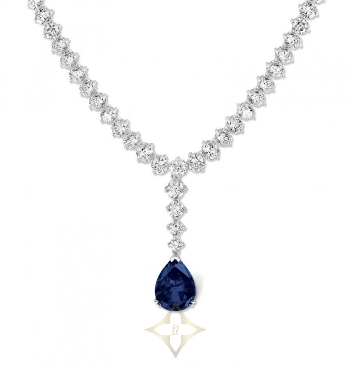21.30 Carat Diamond Gradient Necklace in White Gold with Pear-Shaped Sapphire | Shanghai 🇨🇳