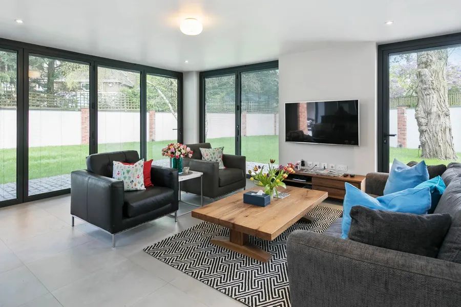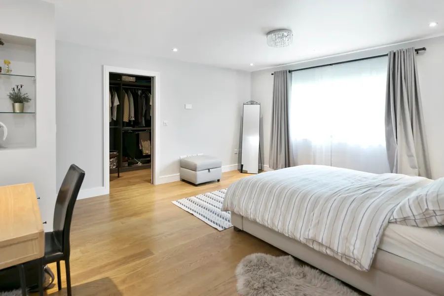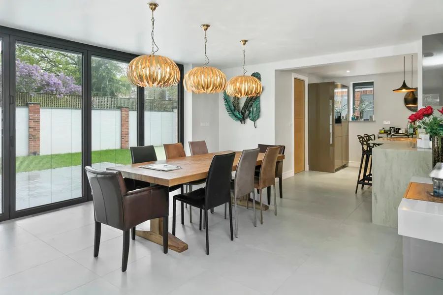 A truly superb, newly re-modelled, detached 6-bed family home, situated behind electric gates in a quiet cul-de-sac off Kingston Hill, minutes’ walk to Richmond Park. With a detached heated garage and annexe with sliding glass doors that could also be used for accommodation or office. The property boasts a wonderful open plan living/dining area leading onto a modern kitchen/breakfast area, a large principal bedroom suite with five further bedrooms, three with en suites. The current owners have spared no expense to create a modern family home.