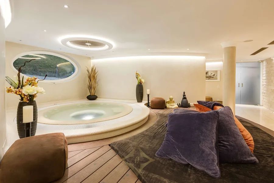 The upper floor offers four bedrooms and four bathrooms. The top floor presents itself as a luxurious master floor: two bedrooms and a dressing room are complemented by a breathtaking master bathroom and an additional shower room. In addition to the spa area and gym, there is an underground garage with five parking spaces in the basement. An individualized elevator connects all four levels without steps.
