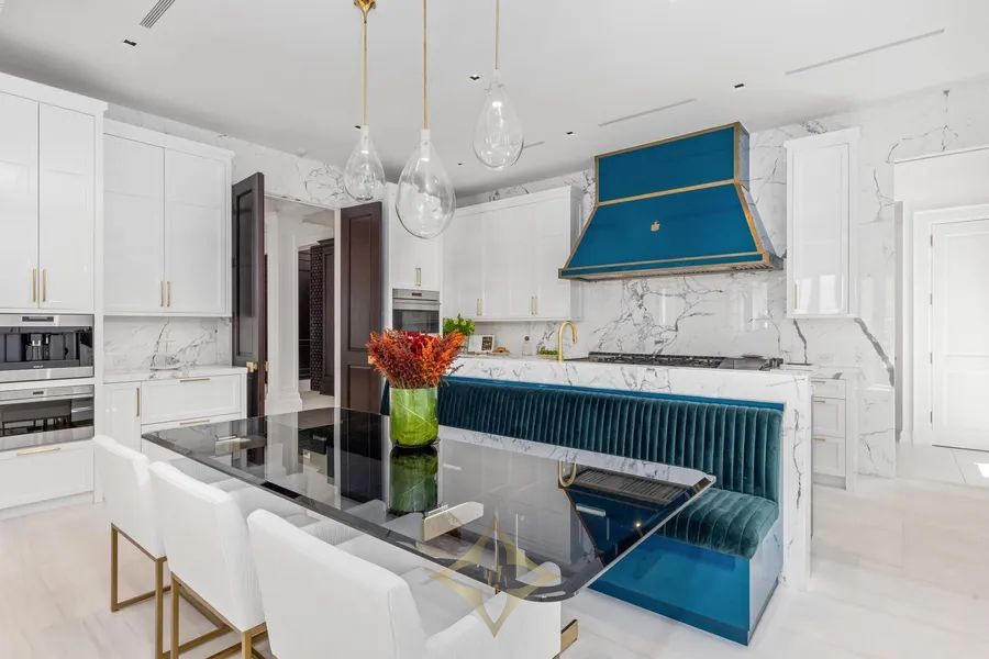 With no expense spared and extensive attention to detail applied to the complete overhaul and multi-year reimagination of this property, 1460 N Lake Way includes a 1400 bottle walk-in wine cellar, kitchen appliances from Officine Gullo in Tuscany, level 5 drywall, Thassos marble in the bathrooms, floors of Bianco Dolomiti marble from the Italian Alps, Statuary marble countertops, new hurricane impact windows and doors, a new roof, and a multi-million dollar landscape package. The home also showcases a plethora of other modern amenities like a movie theater, smart home Lutron automation, hidden music system recessed in the ceiling of every space, and full home 100kw generator. The generous upstairs terrace and expansive poolside loggia on the first level provide stunning water views, allowing residents to fully immerse themselves in the best of Palm Beach coastal living. This one-of-a-kind masterpiece is completely turn-key and a truly rare offering along the Palm Beach Island waterfront.