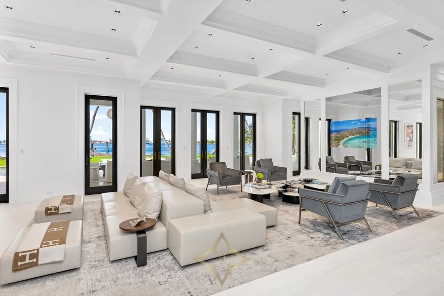 Welcome to 1460 N Lake Way, an immaculately renovated direct waterfront compound, just recently completed in 2024 and situated ideally on the coveted North End of Palm Beach Island. One of about only 25 direct Intracoastal waterway homes on Palm Beach Island which is both North of Worth Avenue and not obstructed by the Lake Trail, this show-stopping, ultra-high ceiling residence with approximately 16,000 square feet of total living space sits on nearly an acre and features approximately 165 feet of water frontage with a new deep water dock ready to accommodate a large vessel. The estate boasts dual primary suites, a private sound-proof guest apartment, an oversized approximately 75-foot-long travertine swimming pool, and outdoor cabana perfect for entertaining.