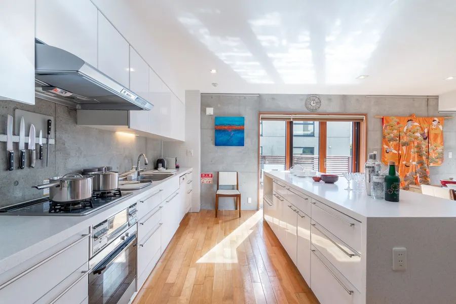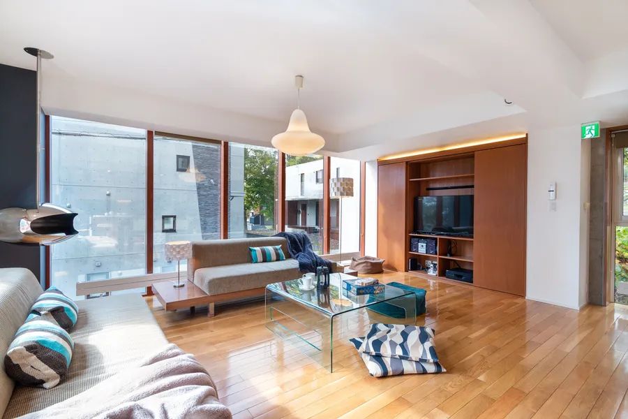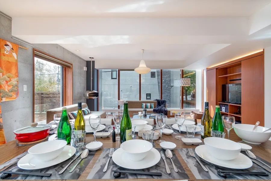 The super structure is built with premium reinforced concrete ”triple barrier” construction consisting of high density insulation sandwiched between 2 layers of concrete (40.5 cm thickness) to achieve the highest level of structural strength in Niseko-Hirafu. Sleek, off-form concrete interior finishes provide a unique finish and lower long-term maintenance costs. Efficient hydrothermic panel heating system reduces energy consumption. Fully furnished in signature Hokkaido Tracks style.