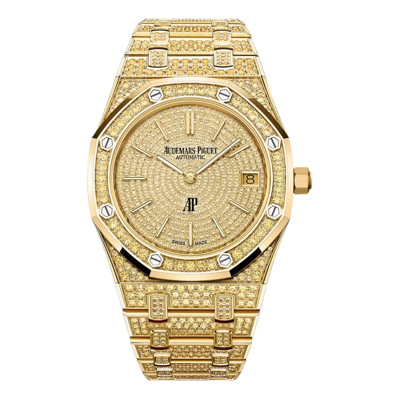 A 39 mm extra‑flat case in hammered yellow gold (only 8.1 mm thick) houses Calibre 7121—hours, minutes, date, 55 h reserve. Limited to 20 m water‑resistance; shimmering “Frosted” texture turns every wrist movement into a burst of light.