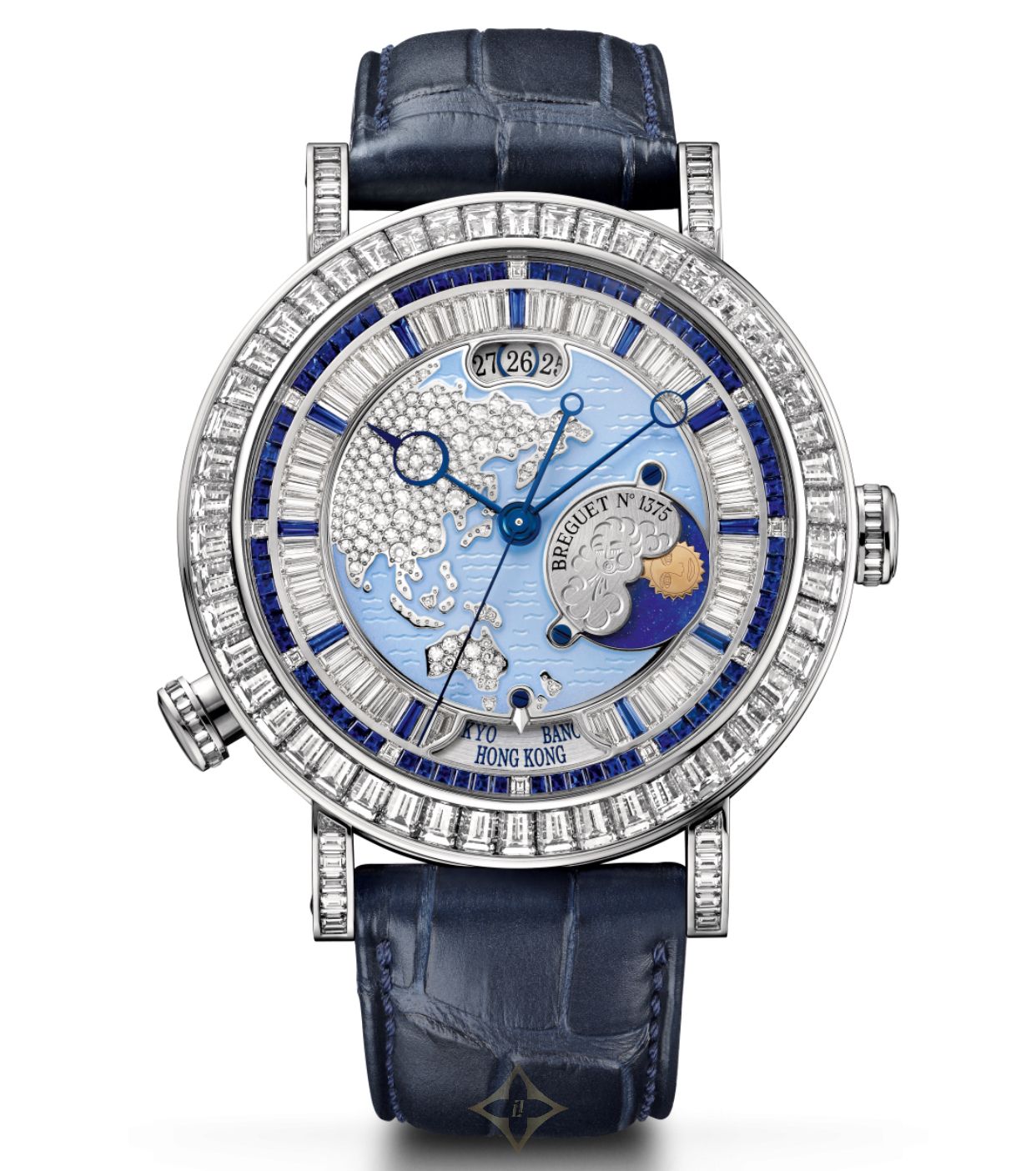 Breguet Hora Mundi 46 mm watch. Model refernce: 5719PT/AS/9ZV/DD0D. Platinum case. Bezel set with white diamonds. Dial depicting the Asia-Oceania continent set with 154 diamonds. Automatic movement. Blue alligator leather strap. This model also known as: 5719PT/AS/9ZV/DD0D, 5719PT-AS-9ZV-DD0D, 5719PT.AS.9ZV.DD0D, 5719PTAS9ZVDD0D. Swiss made. Watch comes in original packaging, with set of documents and 2 years warranty. At Watches of Mayfair we offer new authentic watches at the best prices.