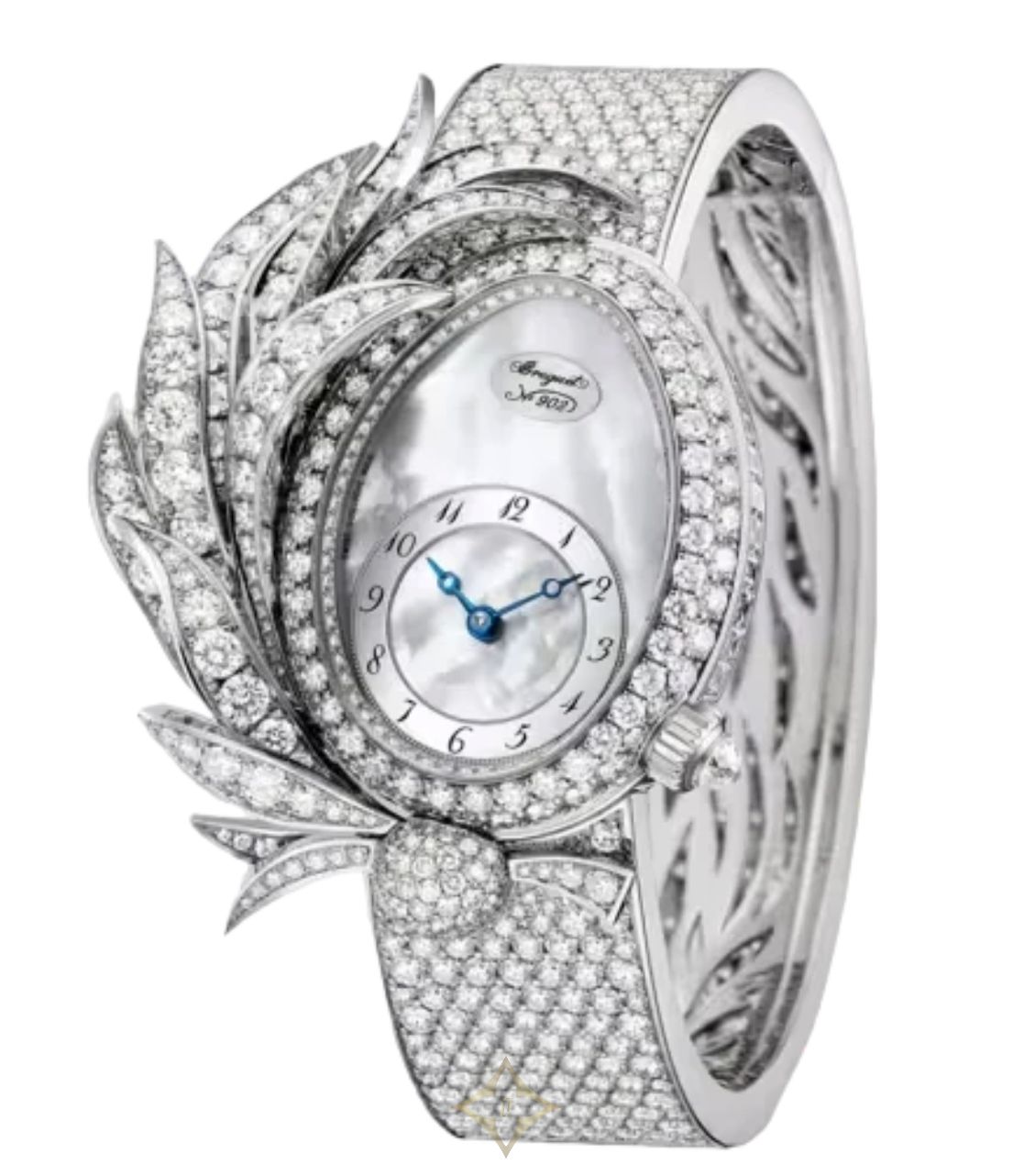 Indulge in the epitome of luxury with the Breguet GJE15BB20.8924M01. The watch case, measuring 33 x 24.95 mm, is made of 18-karat white gold and decorated with 940 diamonds weighing approximately 19.91 carats in total. Sapphire-crystal caseback.