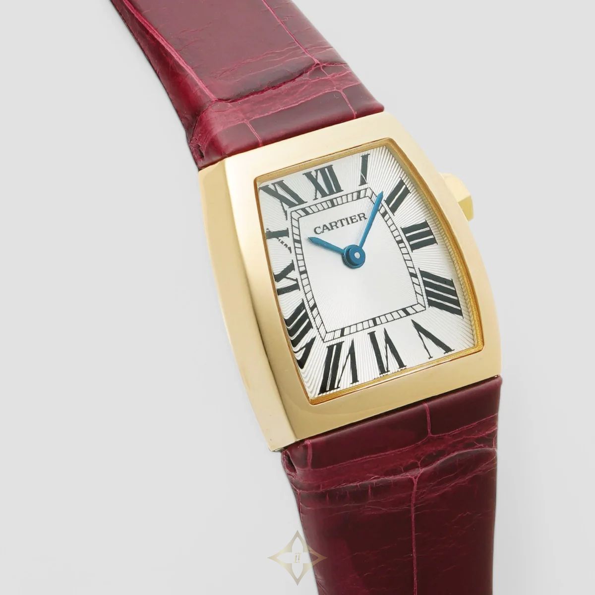 The Cartier La Dona de Cartier W6400256, presented by Geneva Watch Company, is a distinctive unisex timepiece inspired by bold elegance. Crafted from yellow gold, its unique curved case design offers a striking yet sophisticated look. The white dial, adorned with Roman numerals, reflects Cartier’s signature refinement.