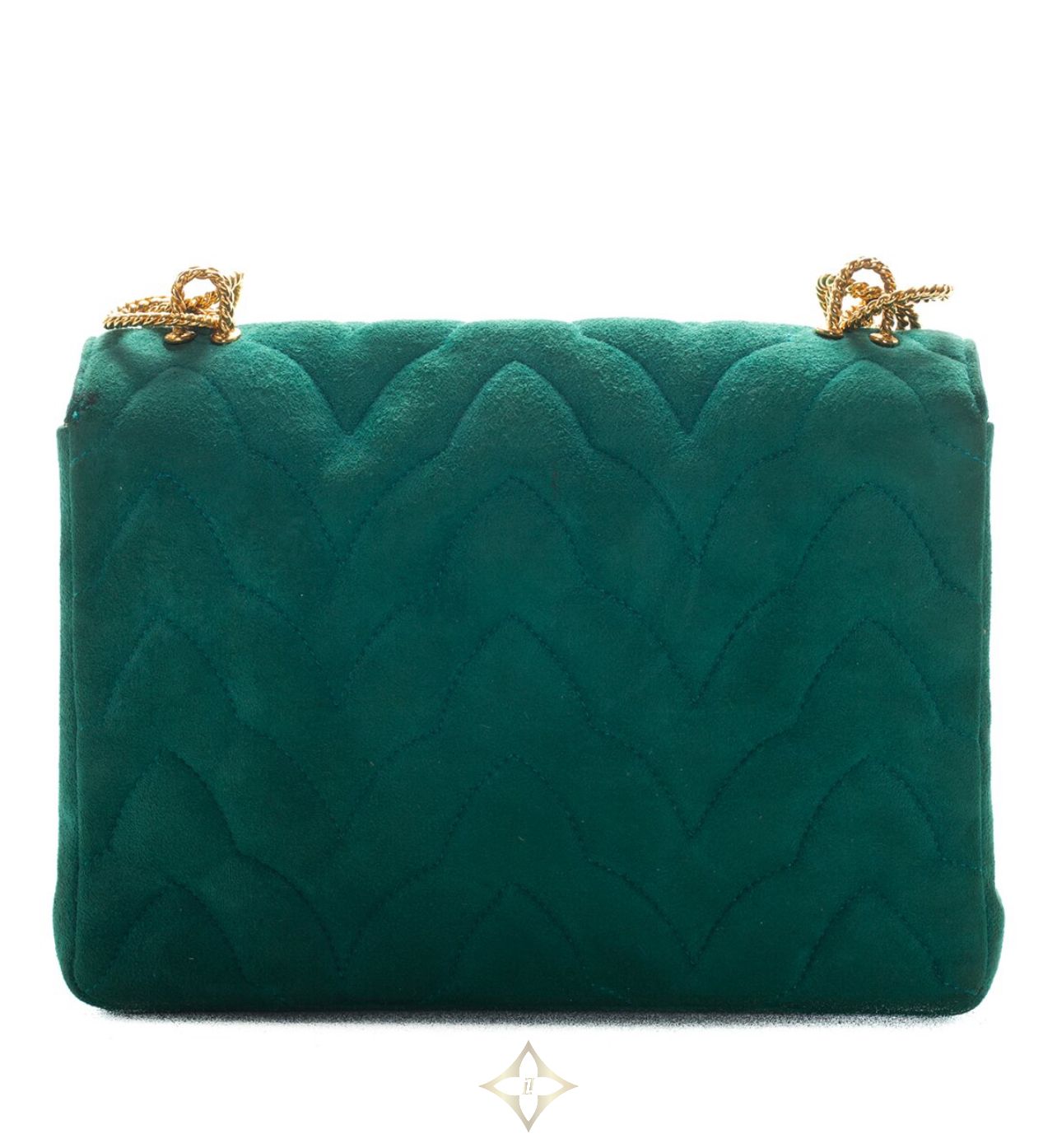 Gripoix Single Flap Bag in Limited Edition Green Quilted Suede with leather lining and 24-karat gold plated hardware