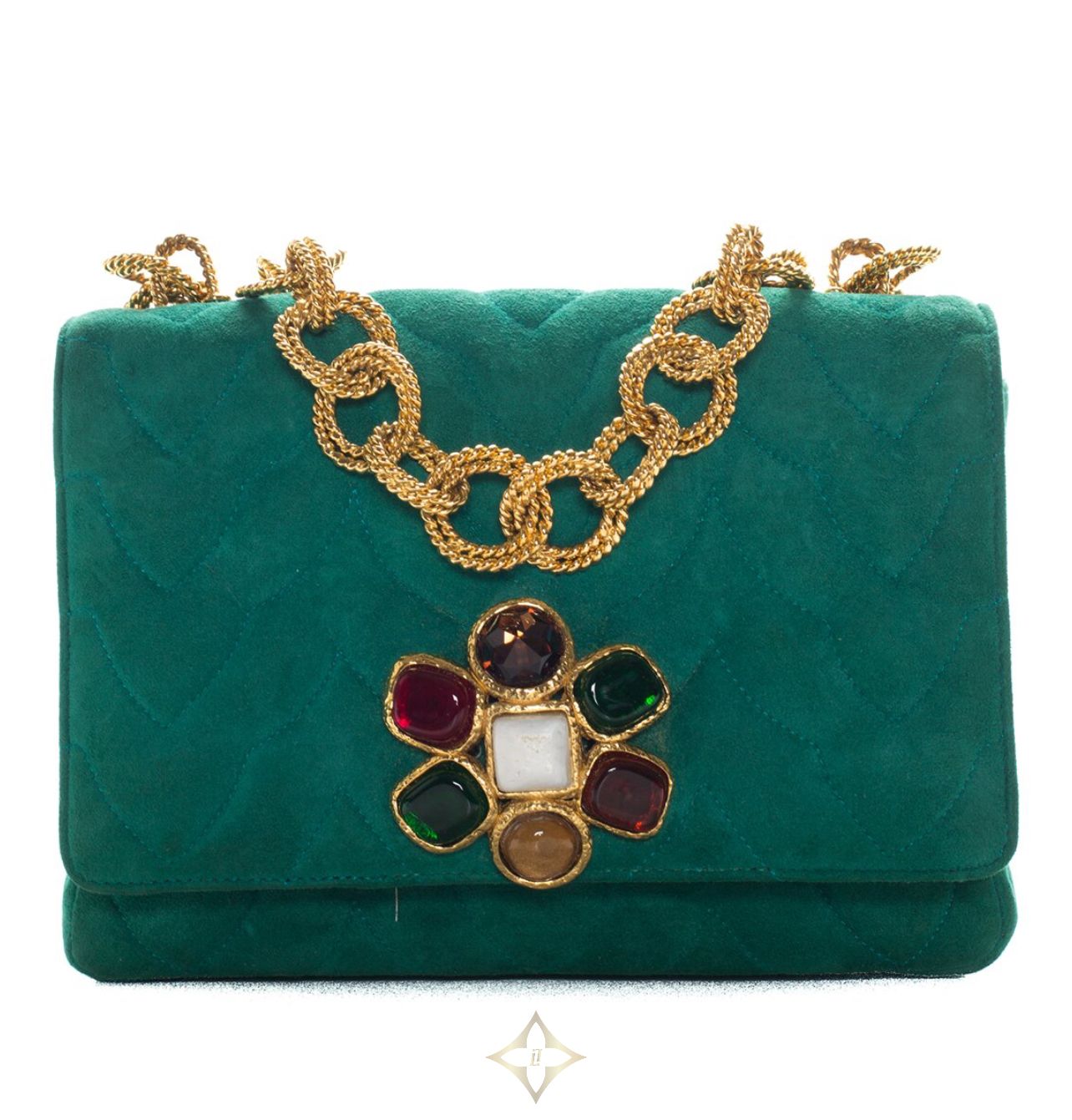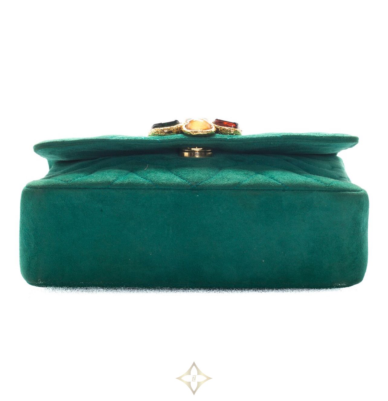 Limited Edition Green Quilted Suede Gripoix Single Flap Bag, Never Carried (Authentic Pre-Owned)