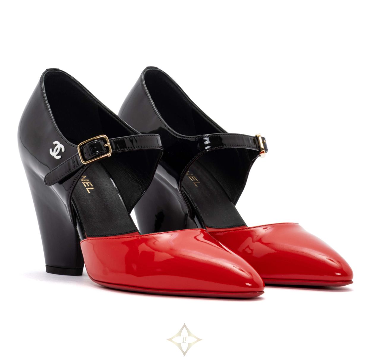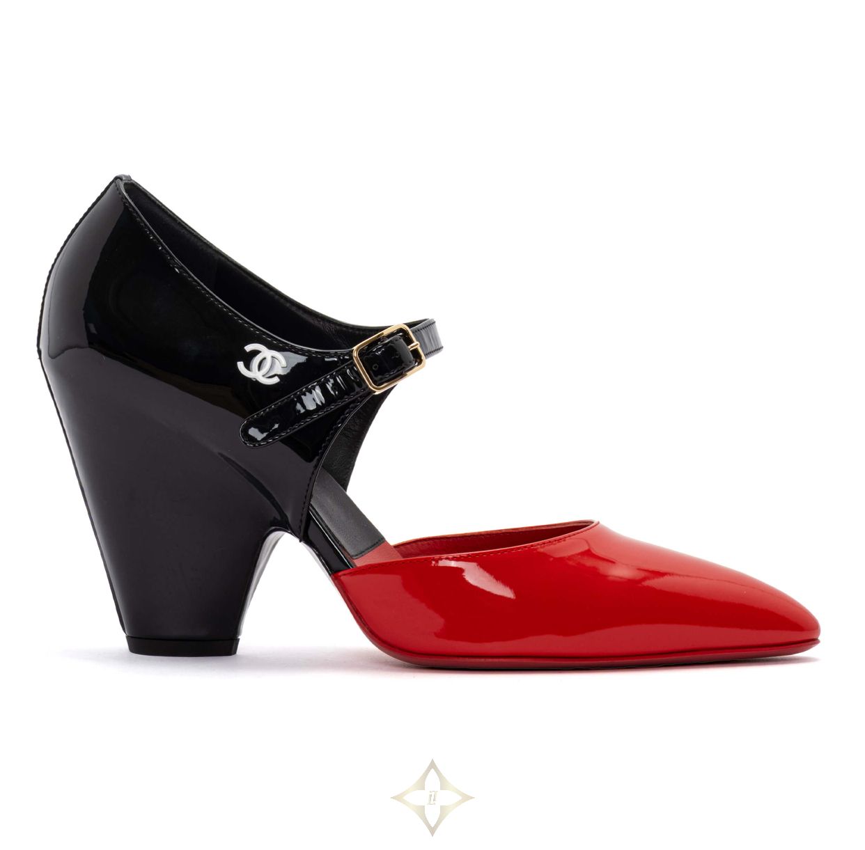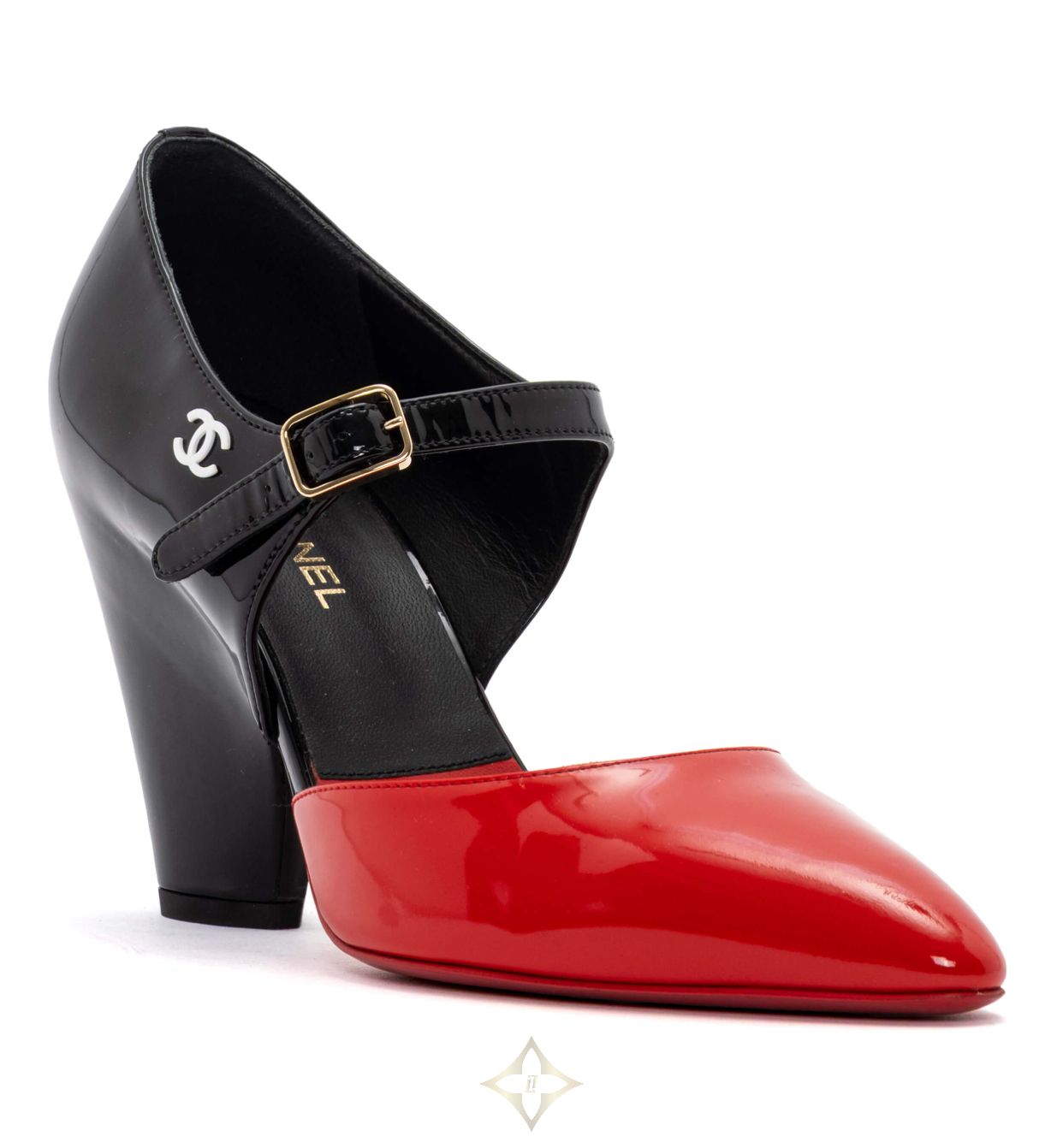 Chanel – Red & Black Patent Leather Mary Jane Pumps / 38 SA2651 | Istanbul 🇹🇷