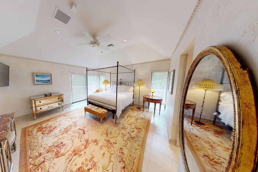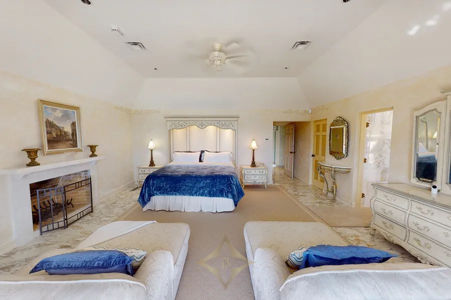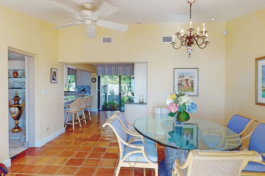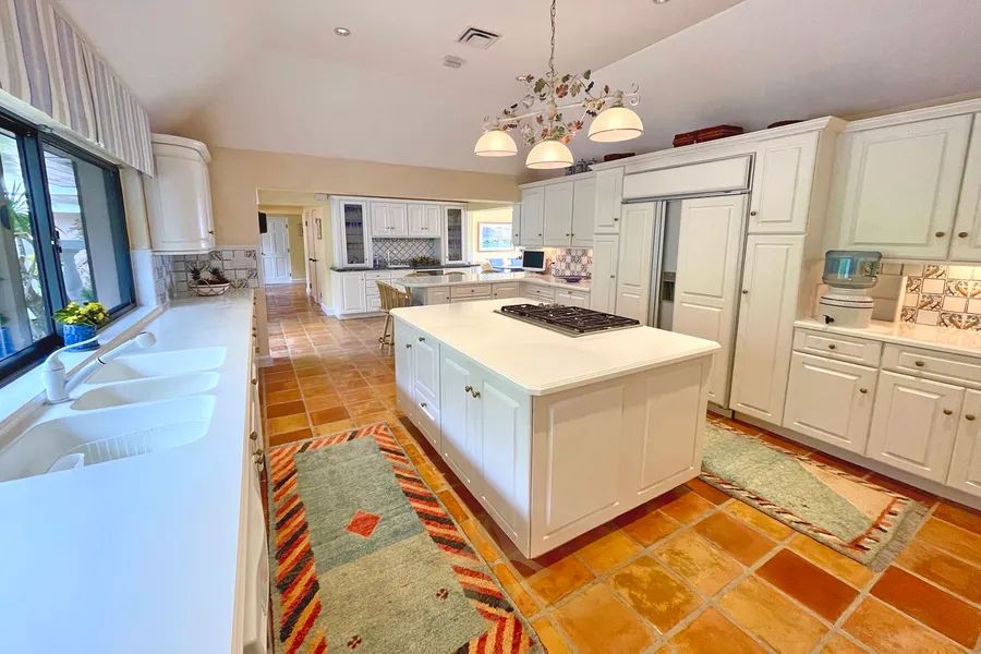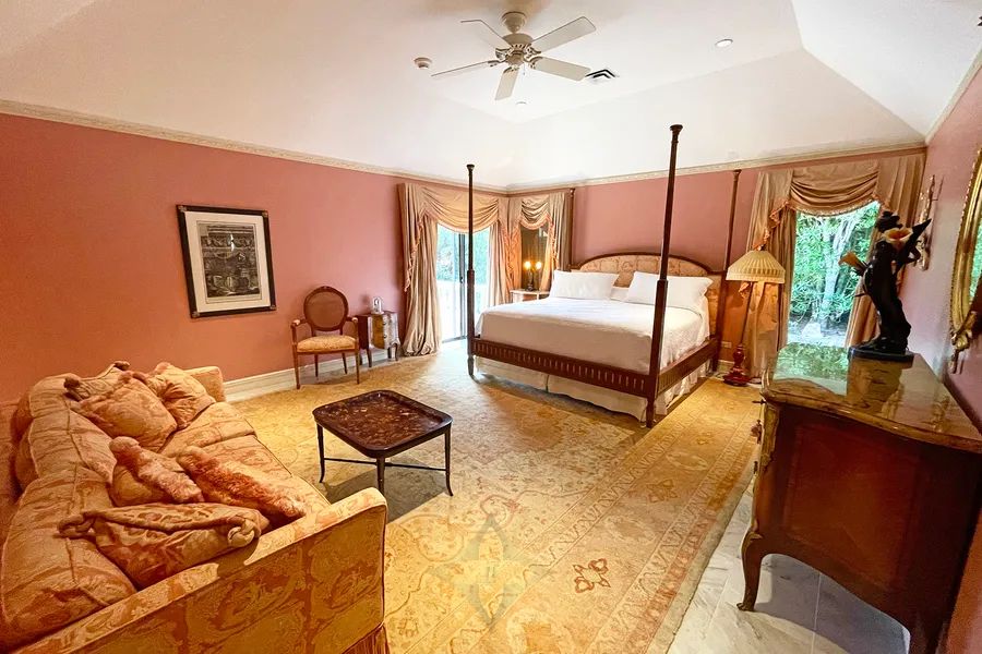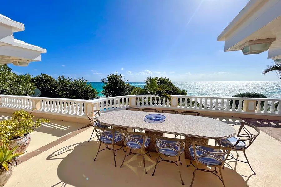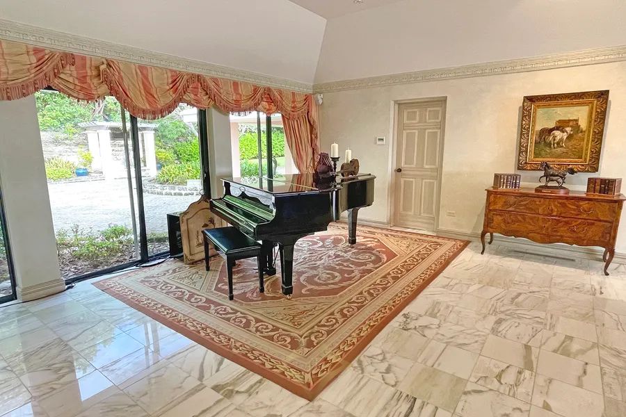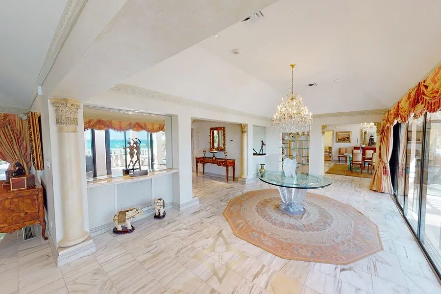 Upon entering the grand foyer, you are met by stunning, unobstructed views of the Atlantic Ocean. This elegant home offers a large stately living room with a fireplace & wet bar, a classic powder room, and a formal dining room with marble flooring throughout. The sliding doors lead out to the vast, stone-covered patio, perfect for alfresco dining or simply relaxing and soaking in the sun. The fully equipped kitchen with a spacious center island is complemented by a breakfast bar and butler’s pantry with a separate light-filled breakfast room with sliding doors leading out to the patio which overlooks the pool and ocean. The separate pantry cupboards and designated kitchen office can serve a dual purpose when entertaining.