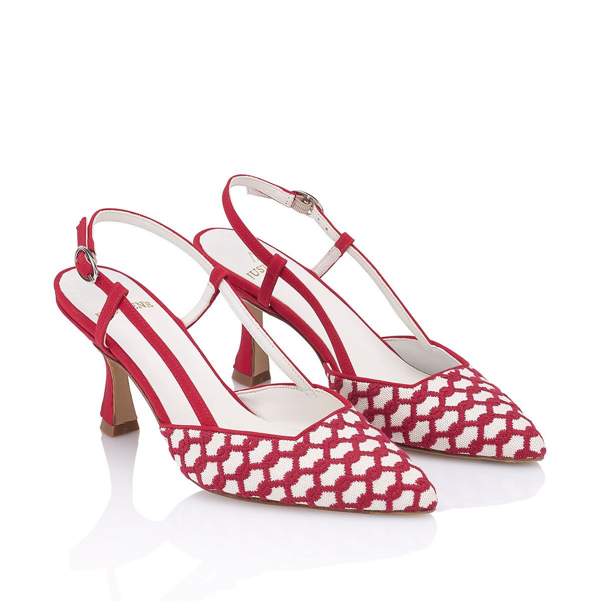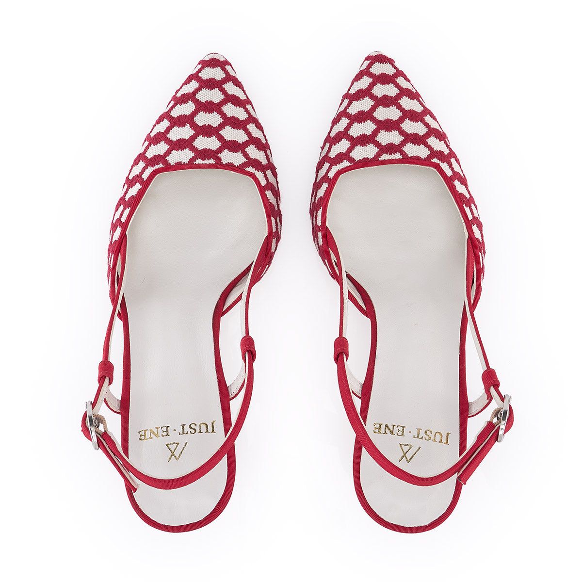 RED GATSBY (6,5CM) PRICE: €345.00 EUR Size: 36 | 37 | 38 | 39 | 40 HEELED SALON SHOES IN NATURAL FABRIC WITH EMBROIDERY AND RED DETAILS. Red Gatsby offers you endless scenarios thanks to the freshness of its materials and the height of its heel, being one of our most timeless designs. What makes them special: Its natural fabric with red embroidery makes this shoe the ideal complement for your day to day thanks to its chic spirit and versatility. Presented with our new 6.5cm lady heel, which like our famous 8.5 cm Lady bets on a more curved silhouette that provides dynamism and style but with a significant difference in height achieving greater comfort and elegance in the same design. Its pronounced square neckline has a red trim to bring dynamism and style to this salon as well as protect the tweed from friction, resulting in an elegant and sexy shoe that visually lengthens and stylizes the foot, showing the birth of the fingers. Red Gatsby accompanies an off-road woman in her day to day, being the perfect shoe to go to work, have a drink with your friends or even go out for dinner. SIZE: This shoe adapts perfectly to any foot. The size fits perfectly so our recommendation in Red Gatsby is that you choose to buy the size you usually wear. If you need advice on size or any other issue, do not hesitate to contact us via Whatsapp or visit us in our store at Calle Almirante, number 18, 28004, Madrid. DETAILS AND COMPOSITION: - Heel: 6´5 cm Retro. - Outer material: off-white / raw and red embroidered fabric. - Oval buckle in silver finish. - Lining: leather. - Sole: 100% leather. - Comfort: they incorporate extra comfort gel in the plant for greater comfort. ——— Just-Ene C/ Almt Almirante, 18, Centro, 28004 Madrid, Spain Phone: +34 635 47 82 92 WhatsApp: +34 635 47 82 92 Email: info@just-ene.com