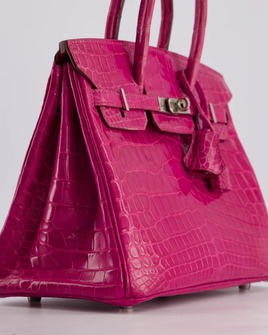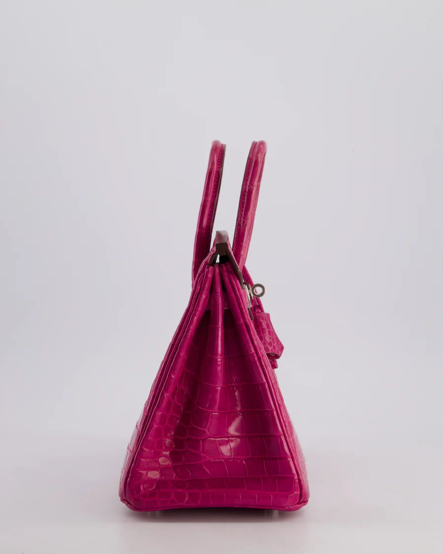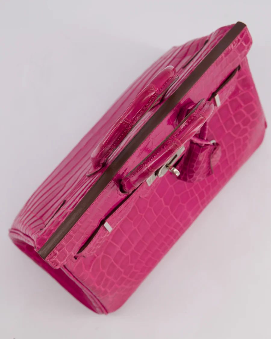 *RARE* HERMÈS BIRKIN 25 RETOURNE BAG IN ROSE SCHEHERAZADE NILOTICUS POROSUS WITH PALLADIUM HARDWARE PRICE: £43,450 *RARE* Hermès Birkin 25 Retourne Bag in Rose Scheherazade Niloticus Porosus with Palladium Hardware This bag is in excellent condition with light wear to the corners Please see all of the photos for more information on this item DETAILS Brand - Hermès Model - Birkin 25cm Materials - Niloticus Porosus Colour - Rose Scheherazade Hardware - Palladium Accompanied by the original dustbag, lock, key, clochette and Bababebi certificate Please note that this bag does not come with a CITES certificate Measurements – 25cm x 20cm x 13cm Year - 2013 Stamp - Q in a square Ref - 043462 We note that all packages sent out via DHL will arrive DDU, Delivery Duties Unpaid. Please note that all of our items are pre-owned unless stated otherwise. By purchasing through us, you are contributing to an ethical and sustainable fashion future. All of our items come with an authenticity guarantee, and all sales are final. For deliveries outside the UK and EU, items are shipped DDU (Delivered Duty Unpaid), meaning any applicable duties or taxes are the responsibility of the customer. You are making great choices for the planet and for yourself, Love Sellier. ——— SELLIER KNIGHTSBRIDGE 6 Cheval Place, London, SW7 1ES, United Kingdom Tel:  +44 20 7581 2380 Email: shop@sellierknightsbridge.com