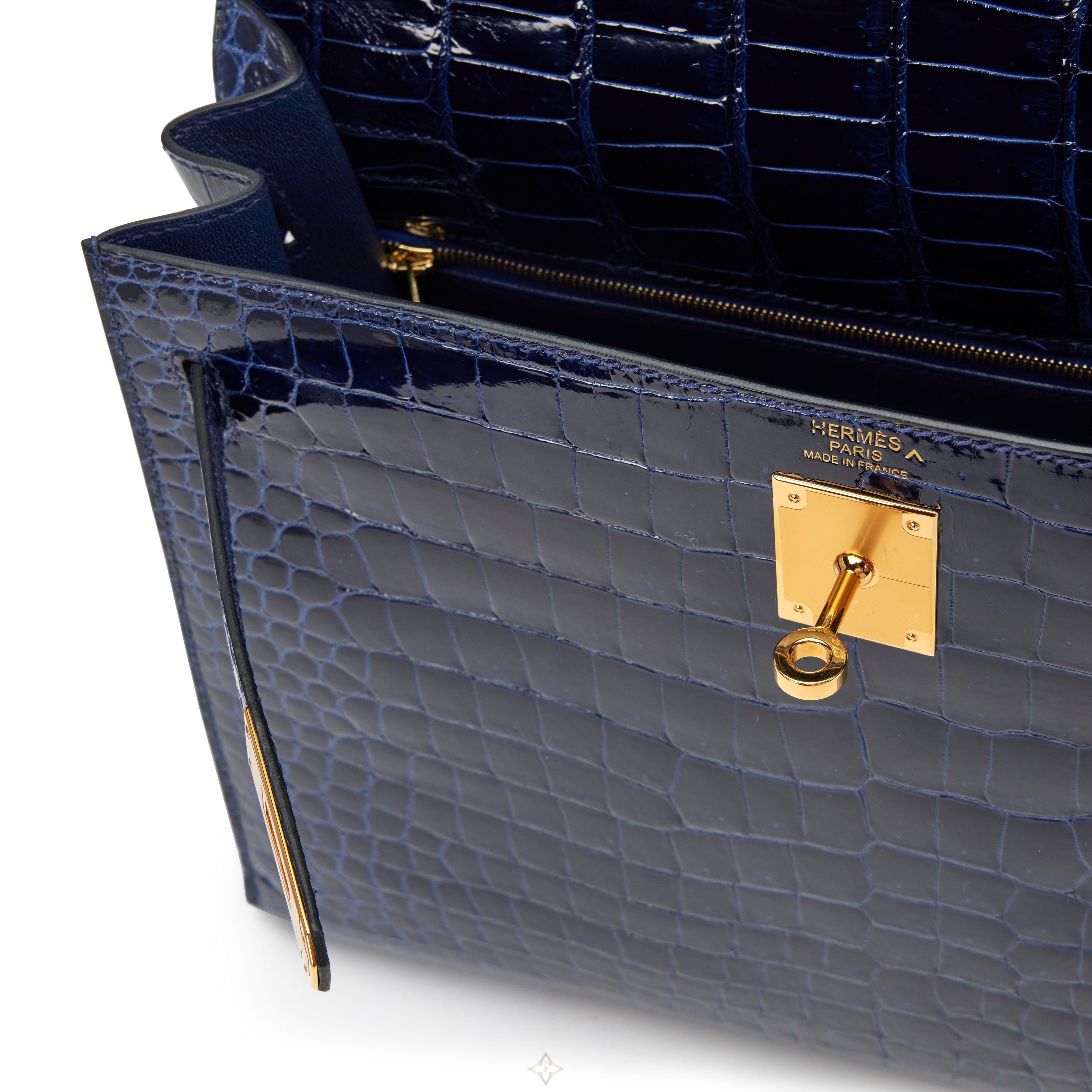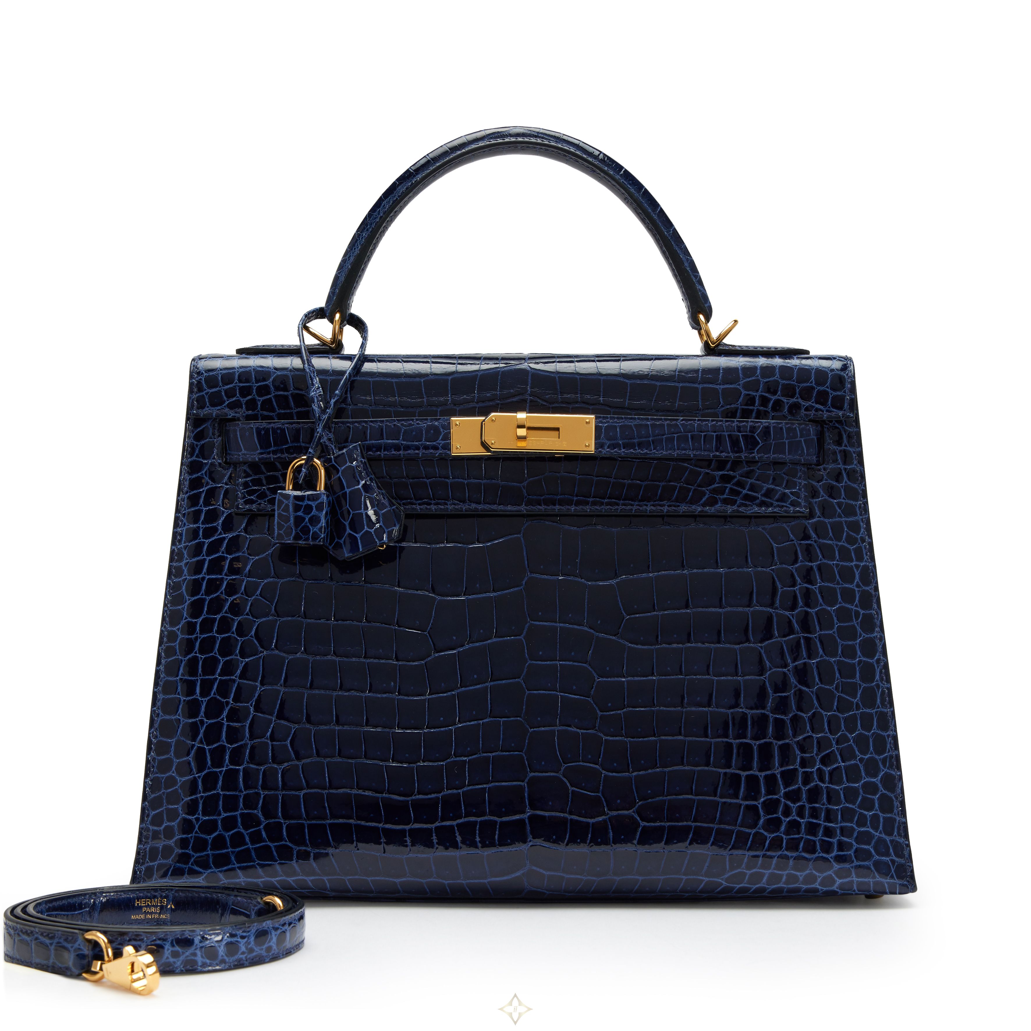 Hermès Bleu Saphir Shiny Porosus Crocodile Sellier Kelly 32 Gold Hardware, 2019 Price: 55,000 USD • Taxes not included VAT and other taxes are not reflected in the listed pricing. • Ships from: New York, United States This item ships within United States only • Authenticity guaranteed We guarantee the authenticity of this item. Description Hermès Bleu Saphir Shiny Porosus Crocodile Sellier Kelly 32 Gold Hardware, 2019 The interior is lined in a tonal chèvre leather Includes lock, two keys, clochette, clochette dust bag, shoulder strap, shoulder strap dust bag, care booklet, felt protector, rain coat, dust bag, and box This item is final sale and not eligible for return Condition Report: Very Good Minimal surface wear on the front exterior crocodile skin. Protective plastic intact on the front hardware and feet. Minimal hairline scratches on the shoulder strap lobster clasp hardware. A light fingernail scratch is present on the interior sidewall. Year: 2019 Dimensions: Height: 9.06 inches / 23 cm Width: 12.6 inches / 32 cm Depth: 4.33 inches / 11 cm Handle Drop: 3.46 inches / 8.8 cm Shoulder Strap Drop Max: 17.32 inches / 44 cm SKU: D7LQG ——— Sotheby’s Bangkok 155 Anantara Siam Bangkok Hotel (unit B6) Rajadamri Road, Lumpini Pathumwan, Bangkok 10330, Pathum Wan, Bangkok Apple Charnsethikul Country Head, Thailand - Bangkok Email: Apple.Charnsethikul@sothebys.com Phone: +662 2533107 Wannida Saetieo Consultant - Bangkok Email: wannida.saetieo@sothebys.com Phone: +66 2 2533108