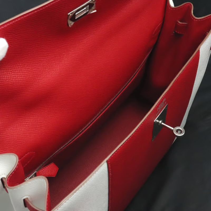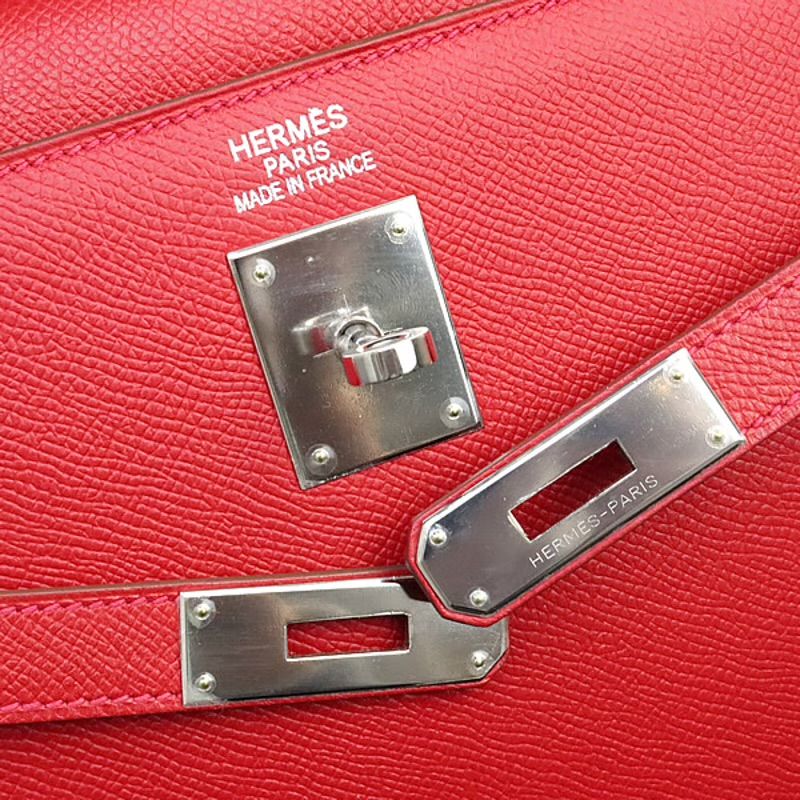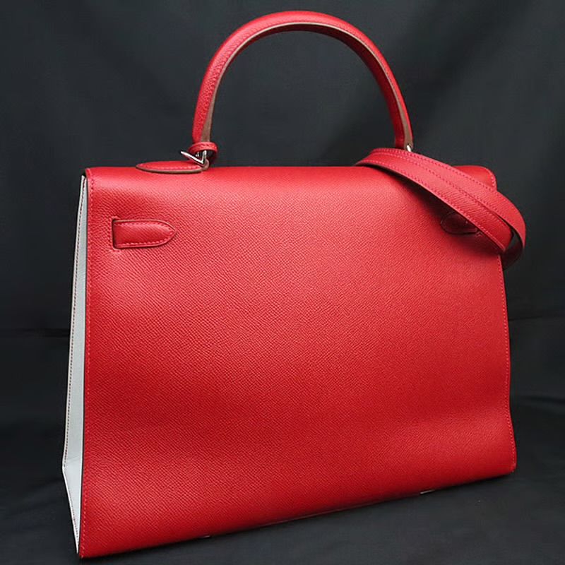 HERMES Sellier Kelly 35 Flag Handbag Epsom Leather Rouge Casaque White | Tokyo 🇯🇵