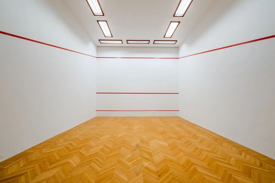 A separate level features an expansive fitness suite, steam room, and an indoor squash court, offering a holistic wellness experience within the comfort of your home.