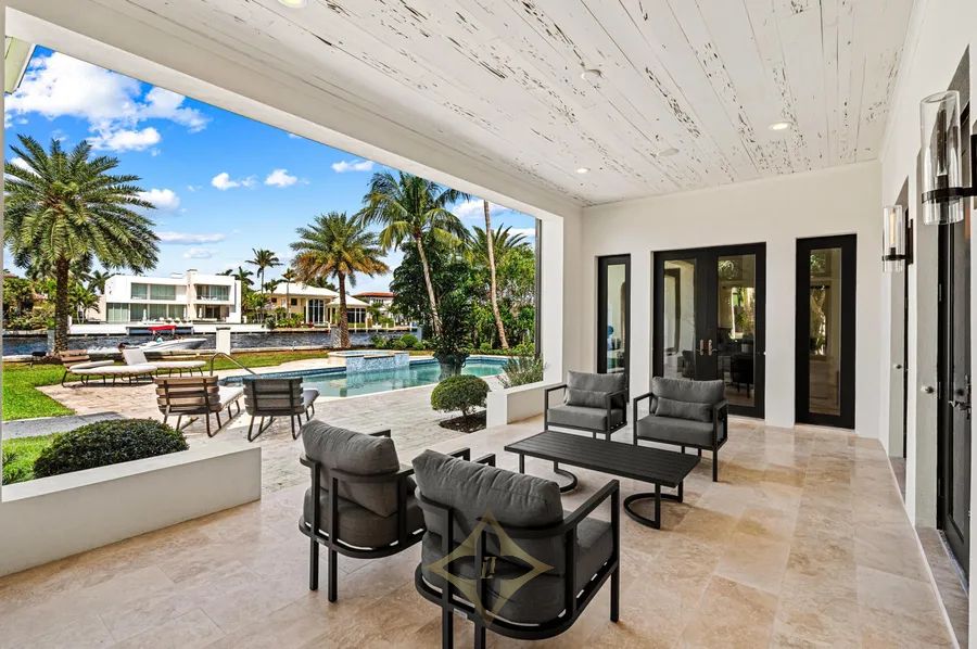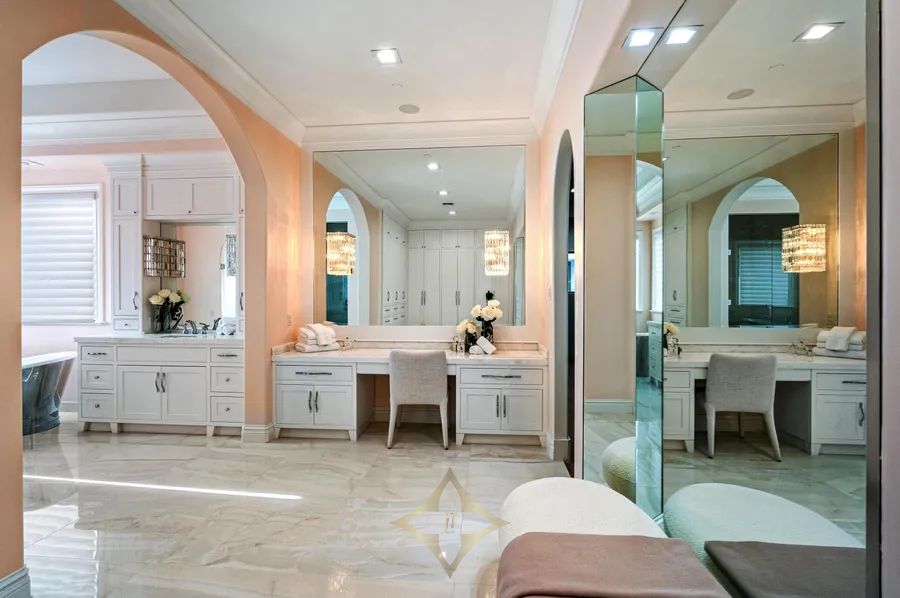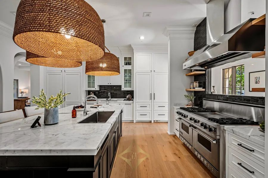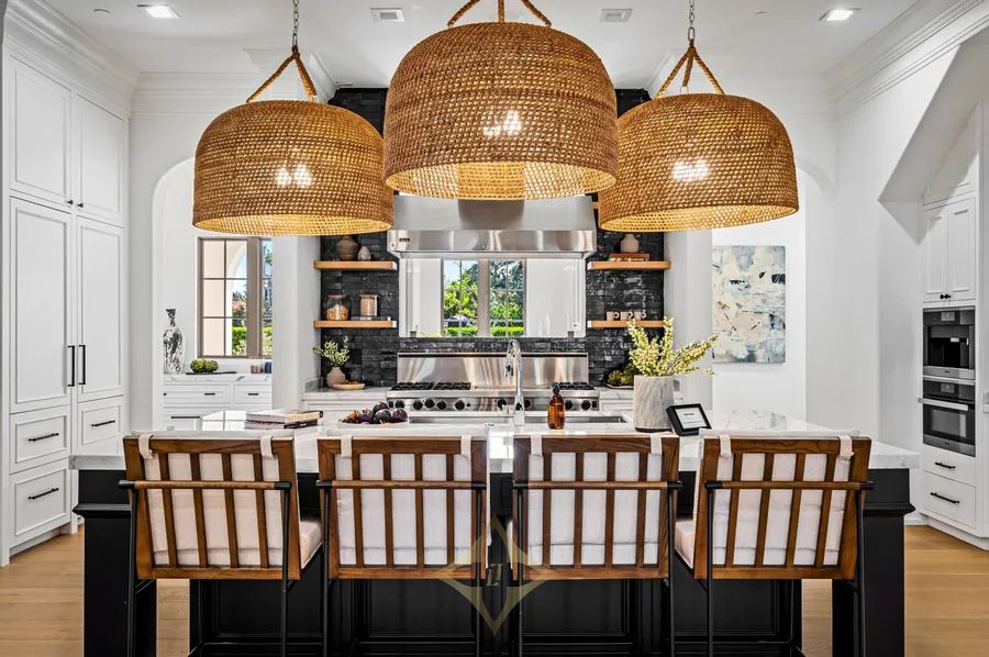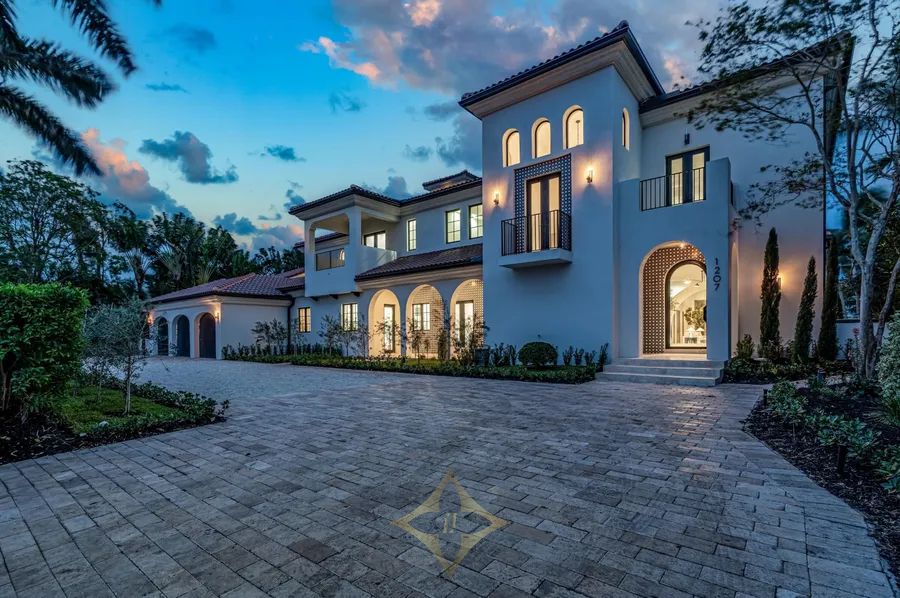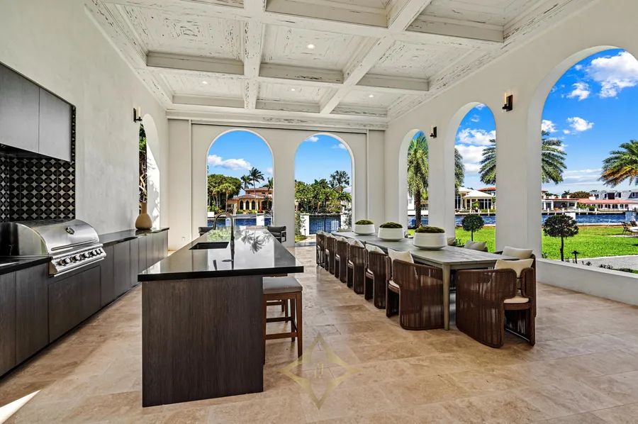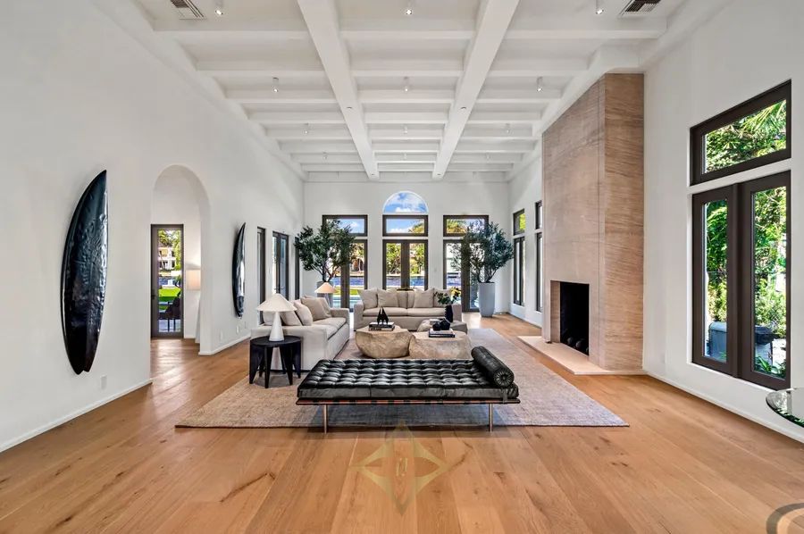 Ideally situated just blocks from the beach in Boca Raton’s prestigious Estates Section, this newly remastered intracoastal estate marries California chic with classic Spanish design. Artfully crafted in 2003 by Dan Swanson of Addison Development in Palm Beach, this bespoke two-story residence has just been reimagined and transformed into a new modern Spanish Villa, capturing the essence of California coastal estates in Montecito. Inside the residence, walls were altered to create a chic, clean feel with dreamy white walls, crossbeam ceiling, modern fireplaces, studio can lighting, wide plank bleached oak floors, and a more sculptural front staircase. All to further streamline the fresh open plan, and amplify the wide gentled arches that are the focal point of this architectural design.