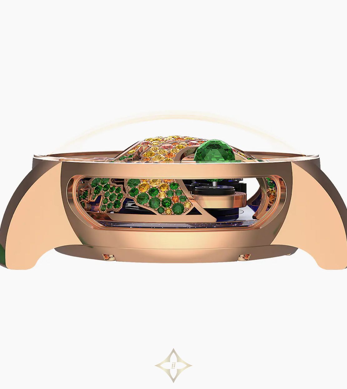 Dome: 18K Rose Gold set with Brilliant-cut Tsavorites (~ 0.19 ct.) and Dark