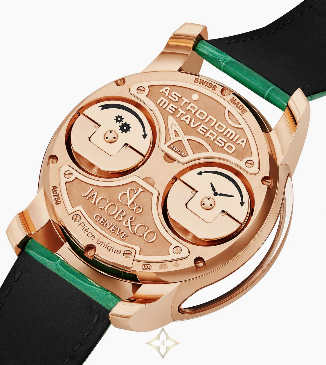Bows: Winding and Time-Setting via two 18K Rose Gold bows on caseback