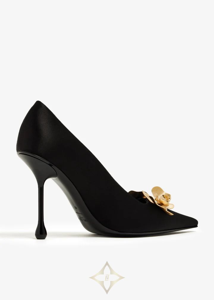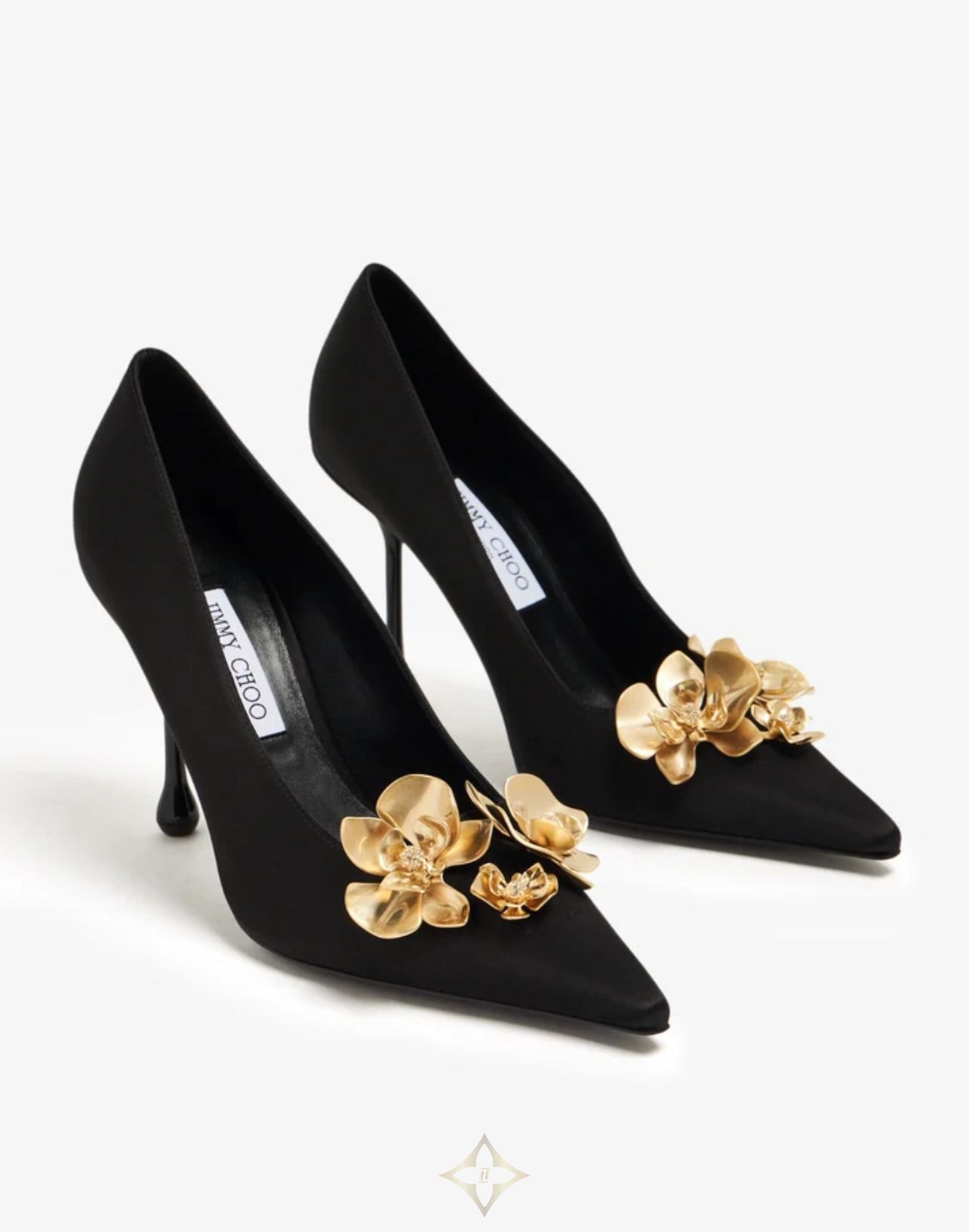 Elegance with every step, Jimmy Choo's Ixia 95 pumps enhance a classic silhouette with captivating floral appliqués across the vamp. They're crafted in satin to a pointed toe with a leather footbed, and a contemporary drop heel with a glossy finish.