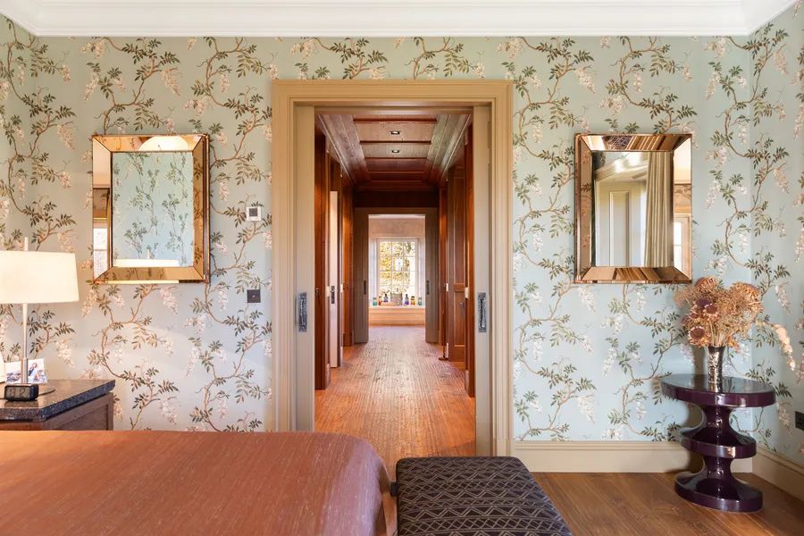 A corridor leads to four more luxury bedrooms, three of which are ensuite, all feature upholstered walls and bespoke fitted cabinetry. These bedrooms are finished to an impressive standard. All bedrooms are spacious and benefit from wonderful natural light and delightful views over the gardens.