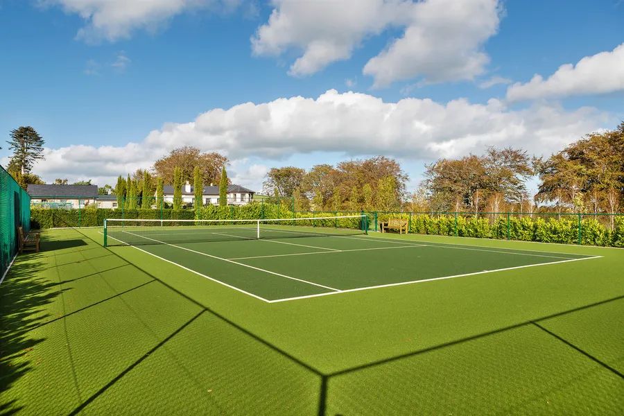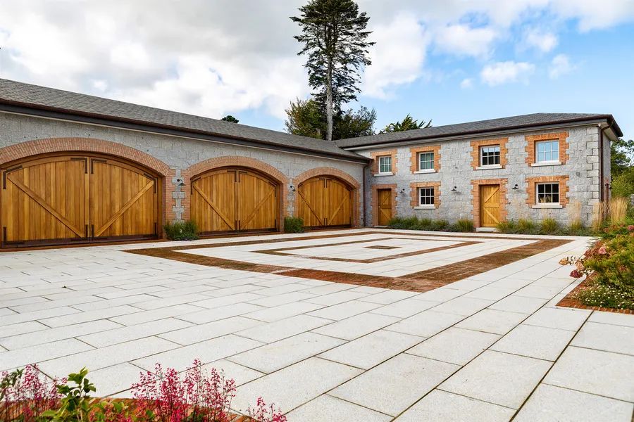 A key feature of Kilquade Hill House is the newly built L shaped coach house to the back of the house creating a rarely found spacious central courtyard. The coach house contains a gym (approx. 23 sq.m. / 247 sq.ft.), a sauna, a steam room, plant room, laundry room, underground wine cellar with capacity for approx. 2,300 bottles, four additional rooms, 5 full bathrooms, WC, 2 storage rooms and 4 double-bay garage doors. The garage space is currently configured to accommodate 14 cars. The coach house is built to the same exacting standards as the main house. The quality materials employed include 15cm thick Spanish grey granite cladding to the exterior brick, slate roof, copper gutters and downpipes, imposing wooden doors made from Iroko featuring equally imposing bespoke ironmongery from Spain, oak flooring everywhere other than the garage, triple glazed windows and sliding doors and underfloor heating throughput (including the garage).