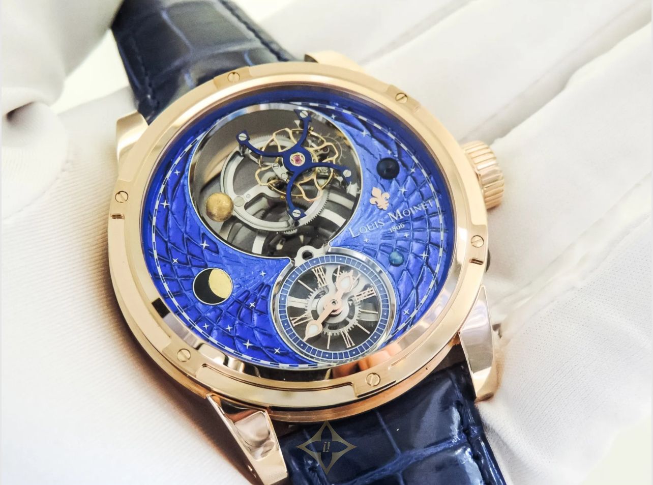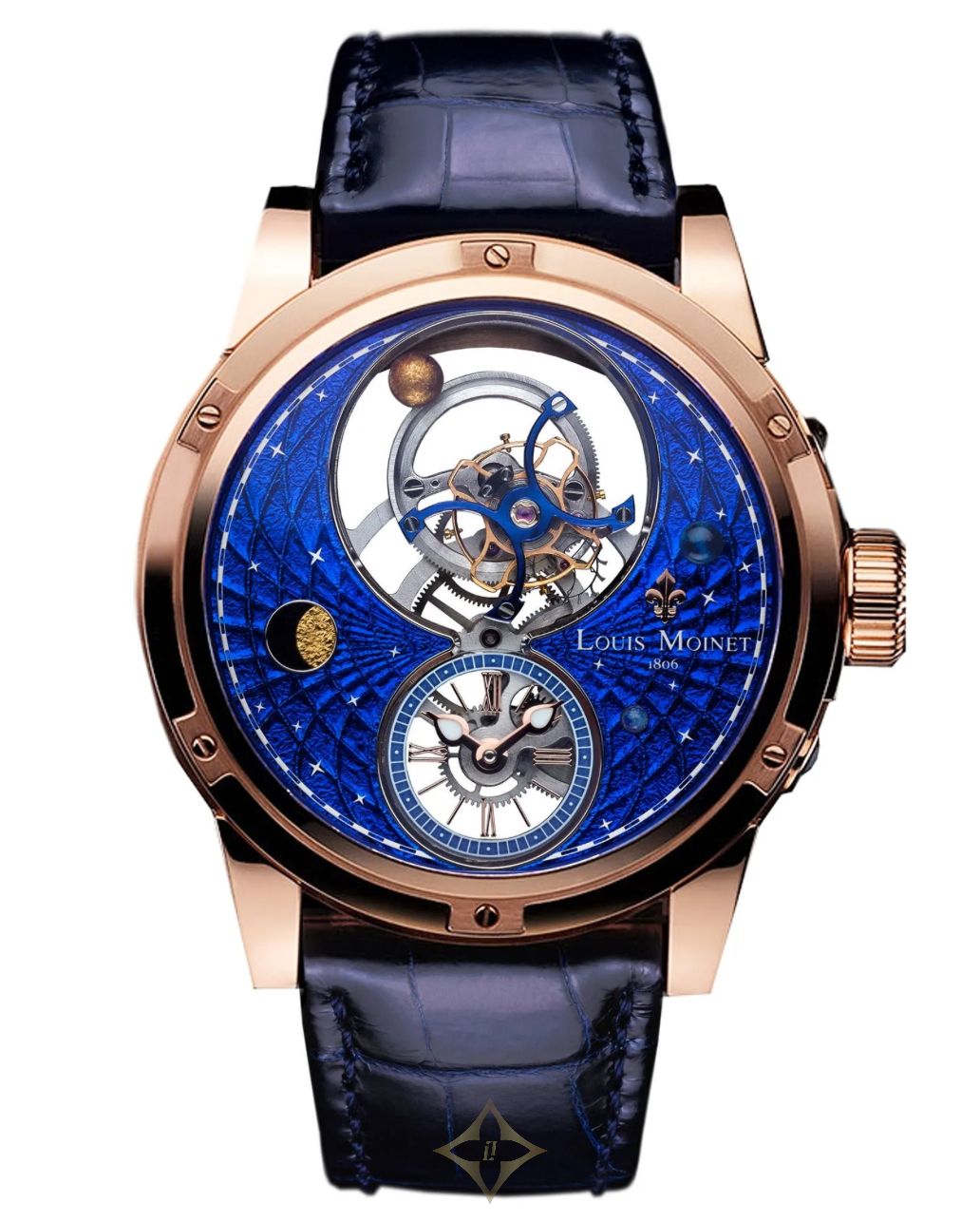 Louis Moinet Space Mystery watch LM 48.50.25 Reference LM 48.50.25 PRICE: €155,137.40 DESCRIPTION Louis Moinet Space Mystery is the world’s first “satellite tourbillon”: the cage is balanced by means of a planet that rotates around it. And this is just one of several exclusive Louis Moinet features in the piece: Space Mystery also includes authentic fragments of a mysterious meteorite from the far-flung regions of space that holds traces of amino acids – possibly one of the first forms of life in the universe. This unique Fine Watchmaking composition is showcased on a dial in Magic Blue – a colour whose exact composition remains one of Louis Moinet’s closely-guarded secrets. This hue endows Space Mystery with all the depth of the cosmos so dear to Louis Moinet – in his day, he would gaze at the heavens night after night. With the Louis Moinet Space Mystery, the Ateliers founded in his honour have added a poetic dimension to their vocation – and provided unprecedented heights of watchmaking emotion. After having shown off fragments of the Moon, Mars, and the oldest known rock in the solar system, what could there possibly be left for Ateliers Louis Moinet to present? The answer: the carbonaceous CM chondrite meteorite. Could this be the proof of life in space? Quite possibly. The meteorite in question contains amino acids – the basic requirement for all lifeforms, vital for all metabolic processes. Space Mystery is the first timepiece in the world to include these authentic fragments bearing traces of amino acids – perhaps the very first known sign of life in the cosmos. PRODUCT DETAILS Type: Watch Product colour: Blue Watch style: Complicated Limited Edition: 8 pcs Gender: Men's Movement: Mechanic Lens: Sapphire Case size (mm): 46 Case shape: Circle Case material: Rose gold Case colour: Gold tone Water resistance: 3ATM / 30M Strap material: Alligator leather Strap colour: Blue Clasp material: Rose gold Clasp type: Fold Dial colour: Blue Dial type: No numerals Power reserve (h): 72 Jewels: 20 Extra features: Tourbillon Warranty: 2 years Condition: Brand new, unused, 100% original product Manufactured in: Switzerland (Swiss) ——— EXCLUSIVE PEN (Exclusive Pen, s. r. o.) Company ID: 46646337 VAT ID: SK2023515164 Stará Vajnorská 8 budova HASTEX (3. posch, 831 04 Bratislava, Slovakia Phone: +421 948 592 582 Email: sales@exclusivepen.eu