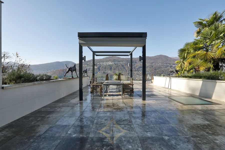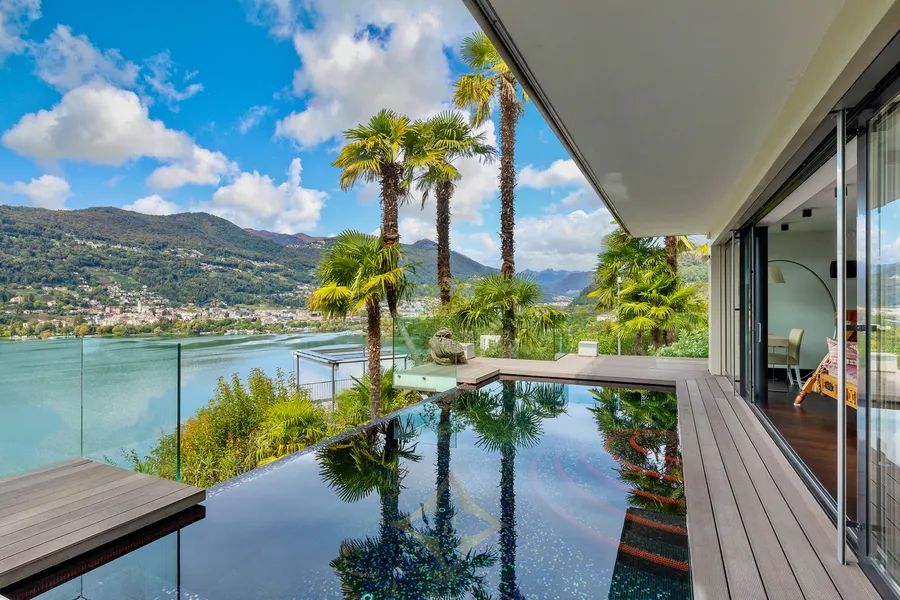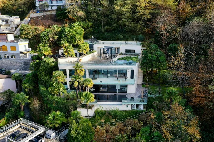 In Montagnola (Collina d’Oro), in a prestigious residential area, quiet and sunny, approx. 10 minutes by car from the centre of Lugano and the American school TASIS, we offer for sale this exclusive contemporary style villa surrounded by greenery with wonderful views of Lake Lugano and the surrounding mountains.